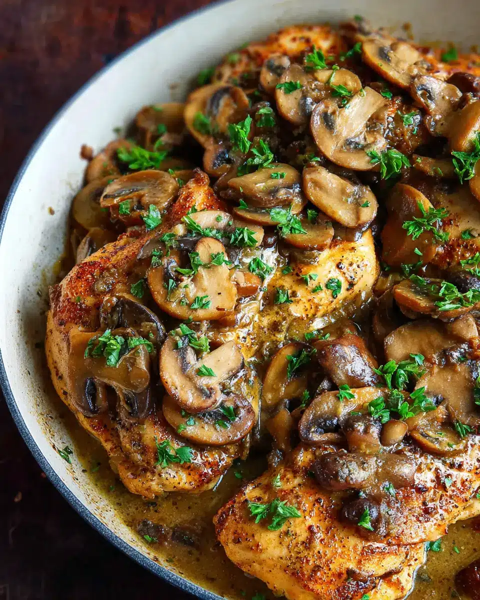 If you prefer a decadent twist, consider adding a creamy element to your mushroom sauce. Simply reduce the amount of chicken broth to ¼ cup and stir in about ⅓ cup of heavy cream just before reintroducing the chicken to the skillet. This transforms the dish into a rich, comforting meal that pairs wonderfully with crusty bread for soaking up the sauce.