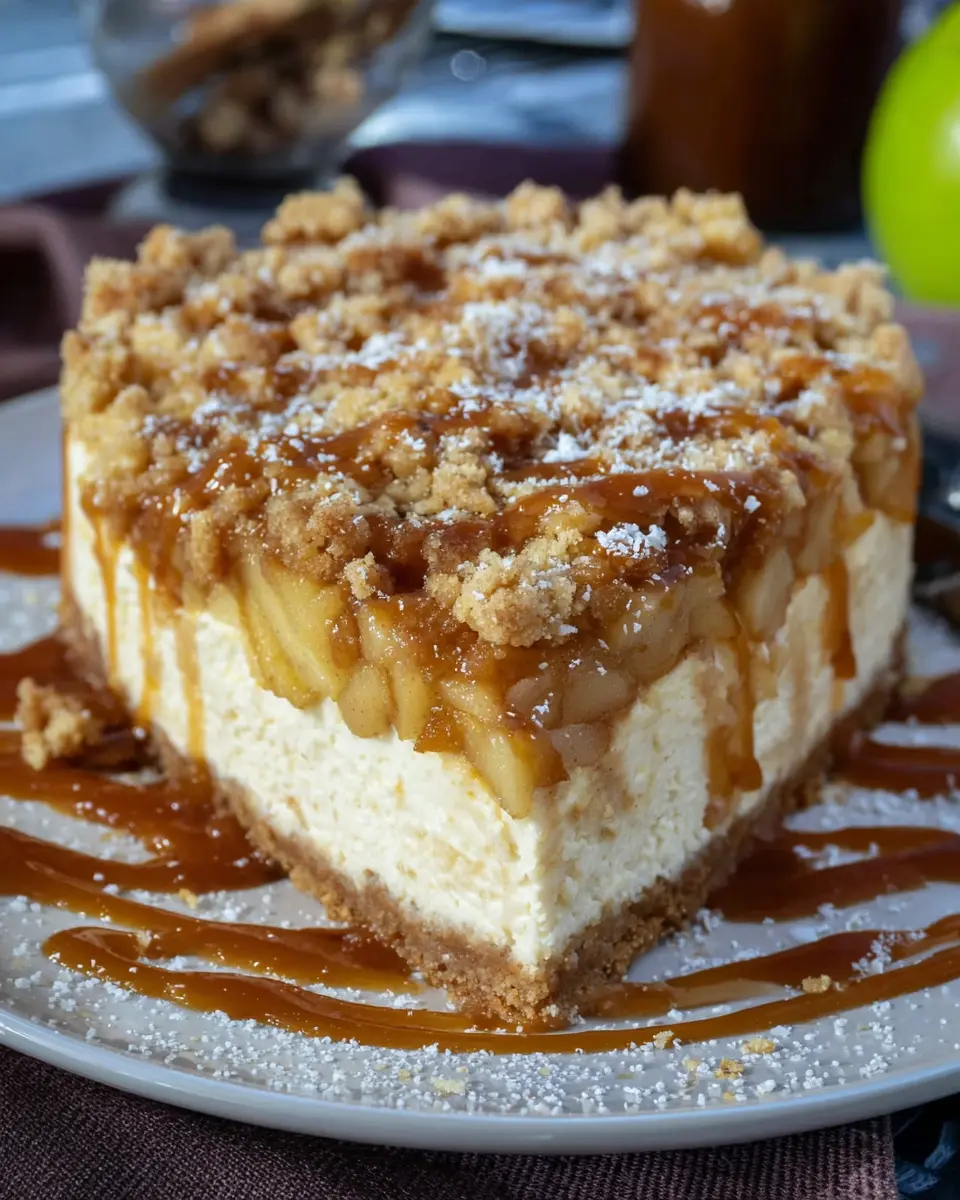 Elevate your apple crumble cheesecake experience by serving it with fresh, seasonal fruit like berries or a dollop of whipped cream. The tartness of berries beautifully complements the sweetness of the cheesecake, while whipped cream adds a luxurious creaminess. For a fun twist, drizzle some caramel or toffee sauce for an extra layer of indulgence.