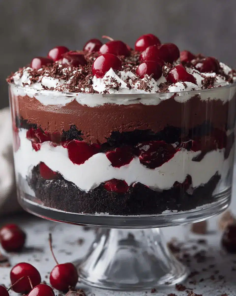 If you haven't yet indulged in a Black Forest Trifle, you're in for a treat! This luscious dessert combines layers of rich chocolate cake, creamy chocolate pudding, and sweet cherry filling, all topped with fluffy whipped cream. It's the perfect way to impress friends at a gathering or satisfy your sweet tooth on a cozy evening.