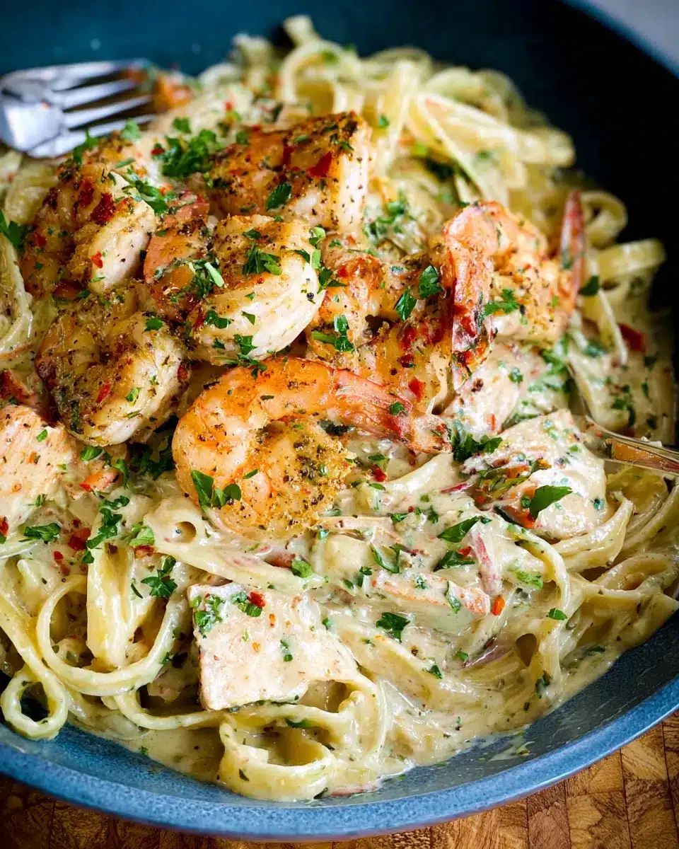Cajun Chicken and Shrimp Alfredo