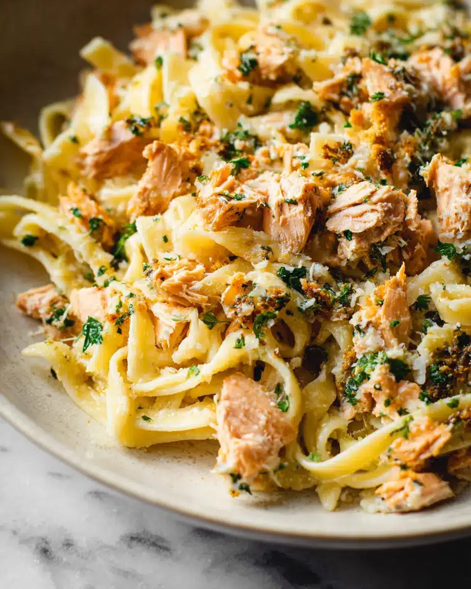 Absolutely! While this canned salmon pasta recipe is designed for the convenience of canned salmon, fresh salmon can be a delicious substitute. Just pan-sear or bake the fresh salmon until cooked through, then flake it and incorporate it into the sauce just like you would with the canned version. This will give your dish a fantastic taste and texture!