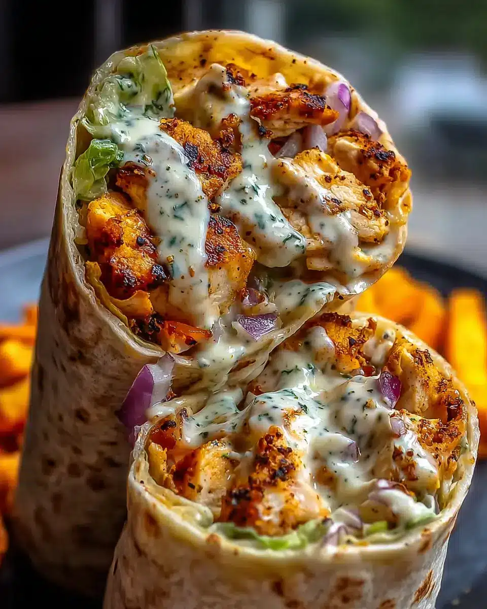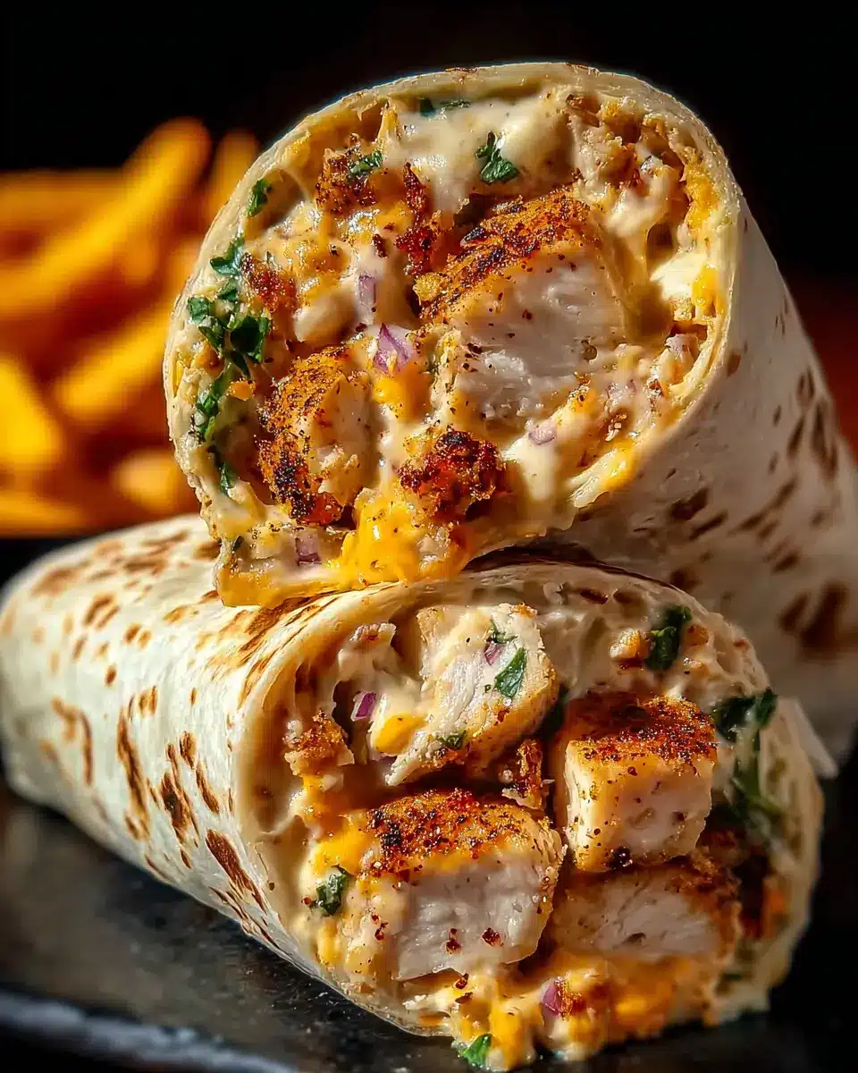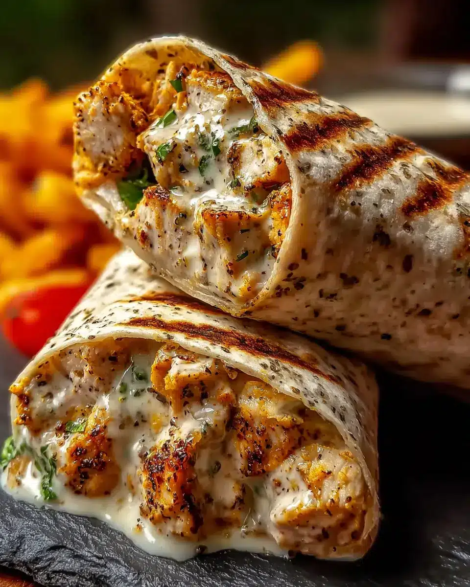 To elevate your cheesy garlic chicken wrap experience, consider serving it with a side of crispy potato wedges or a fresh garden salad. These pairings not only complement the creamy and savory flavors but also offer a delightful crunch. You could also opt for a tangy yogurt sauce or homemade ranch dressing for dipping, providing a cool contrast to the warm, cheesy wraps.