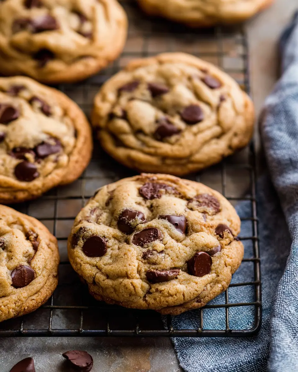 Let the cookies cool on the baking sheet for about 10 minutes before transferring them to a cooling rack. While they cool, feel free to add a few extra chocolate chips on top for that whimsical touch. And then, the best part: enjoy your freshly baked chewy chocolate chip cookies!