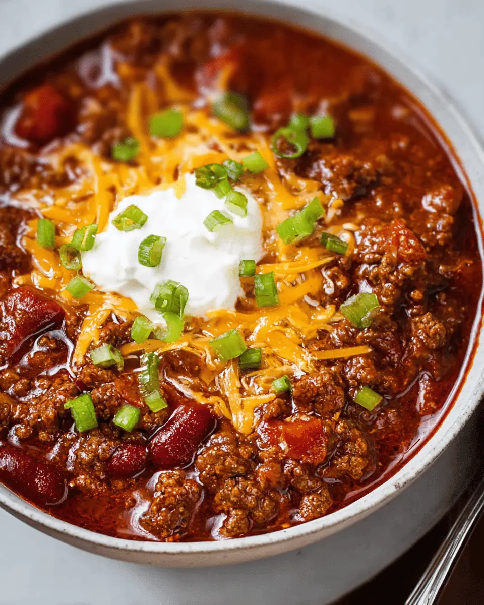 Serve your chili hot, topped with your favorites like sour cream, shredded cheese, or diced avocado. This classic beef chili is not just comfort food; it’s a way to connect with friends and family over delicious dishes. So, gather around, savor every bite, and enjoy!
