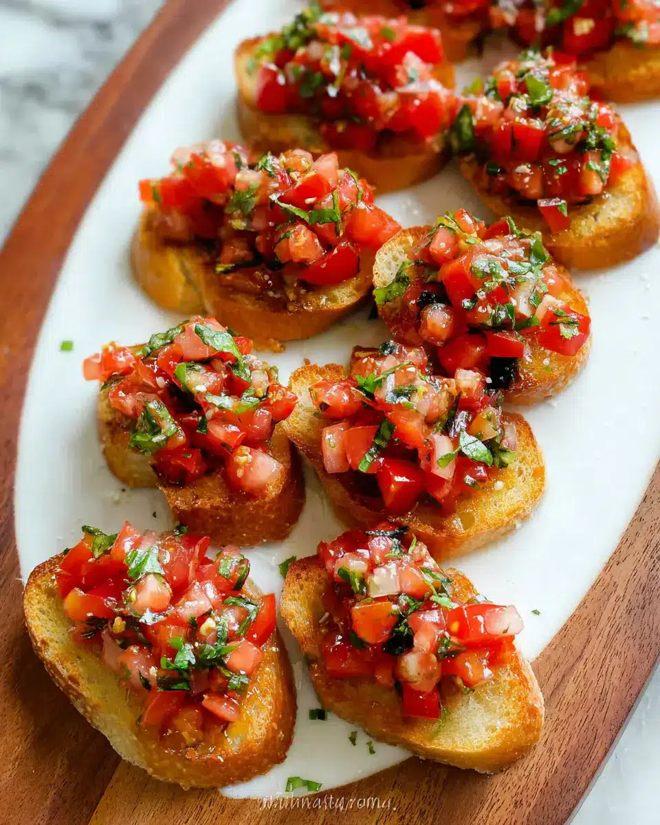 Absolutely! You can prepare the tomato topping a few hours before serving; it actually enhances the flavor as it marinates. Just be sure to toast the bread right before serving for that perfect crunch, as toasted bread can become soggy if it sits too long.