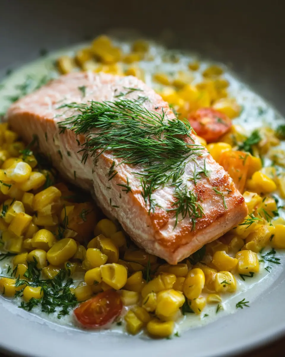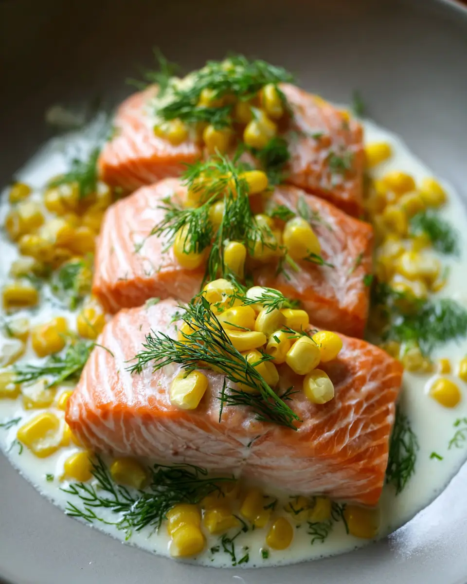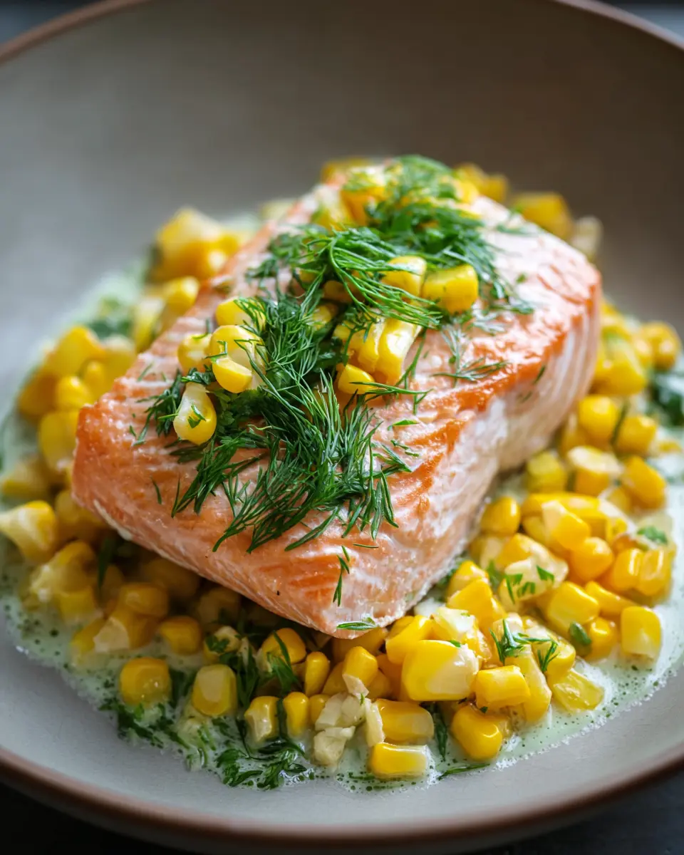 Coconut-Poached Salmon with Corn and Dill: A Quick Delight