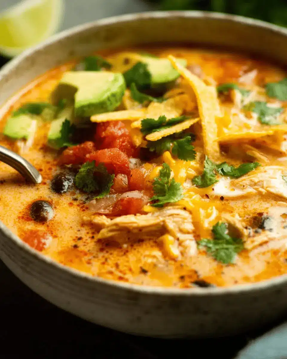 As you taste your creamy chicken tortilla soup, feel free to adjust the seasonings as needed. Now comes the fun part: garnishing! Top off your soup with crispy tortilla strips, diced avocado, sour cream, or fresh cilantro to elevate those flavors. Serve it up in bowls, and enjoy the comforting warmth—perfect for a chilly evening! For additional tips on garnishing, check out this recipe decorating guide.