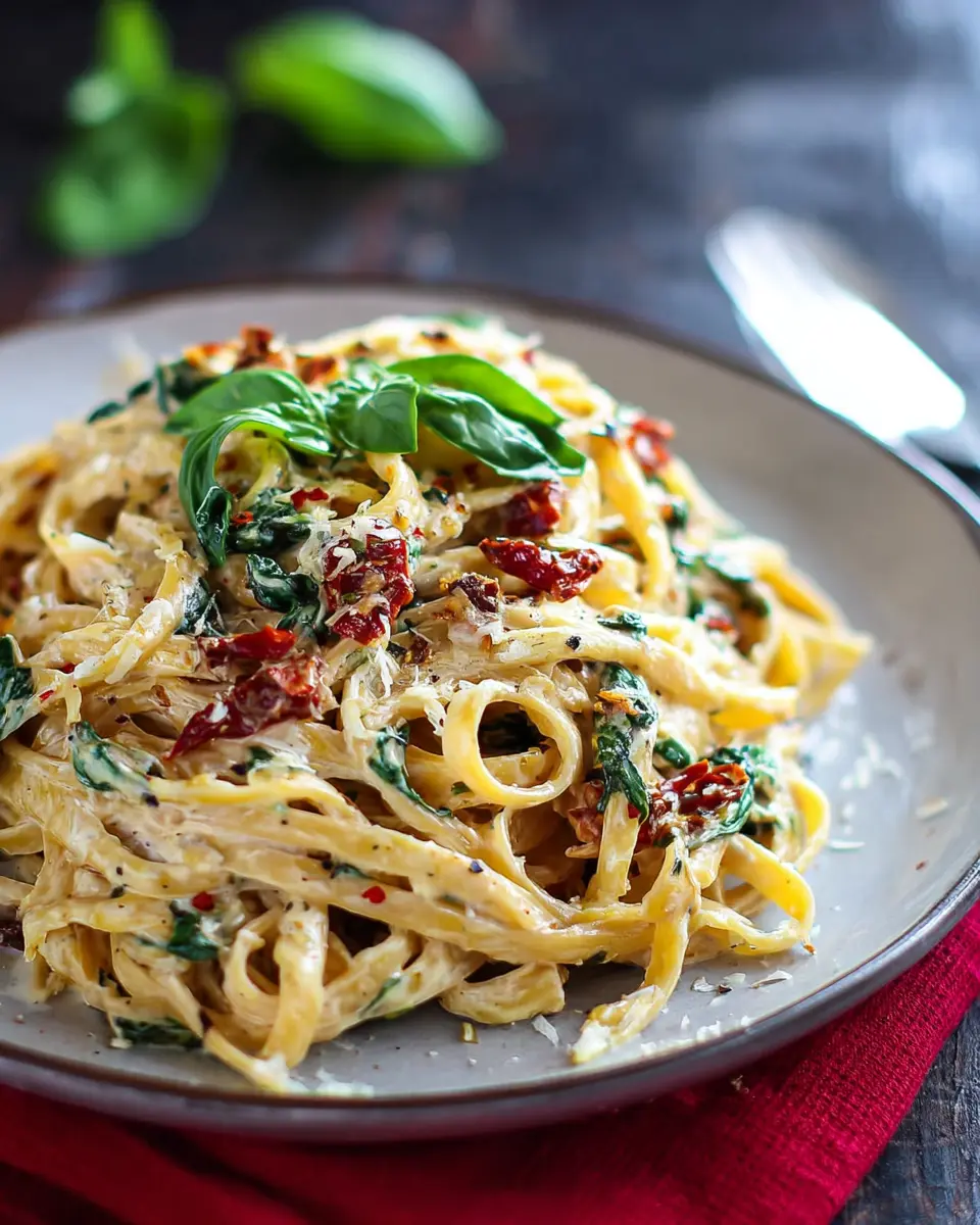 Creamy Sun-Dried Tomato and Spinach Pasta