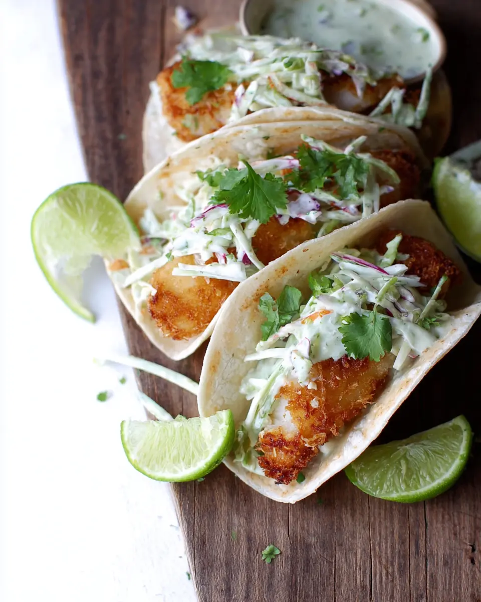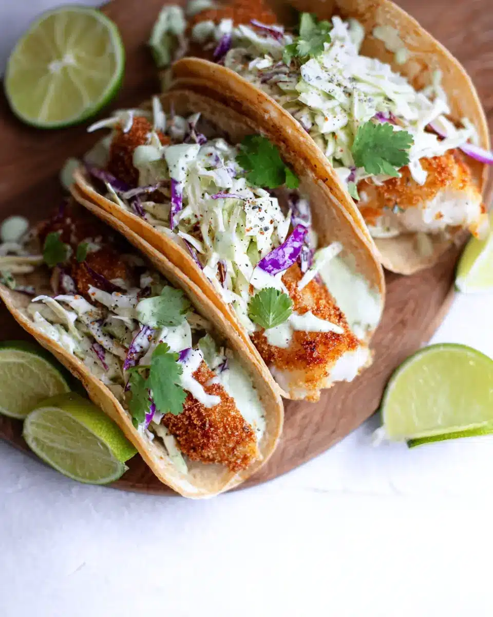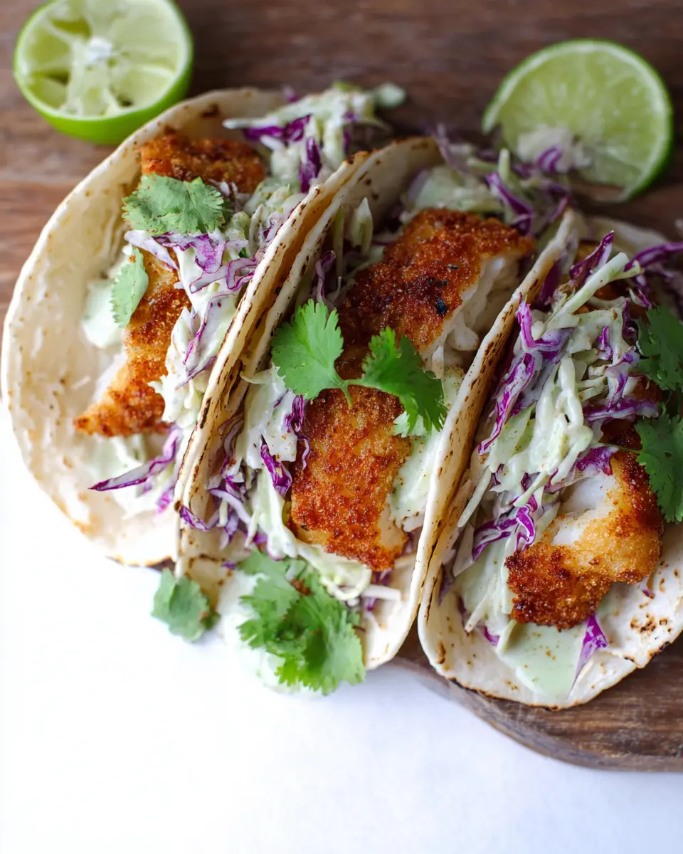 Crispy Cod Tacos with Honey-Lime Cilantro Slaw