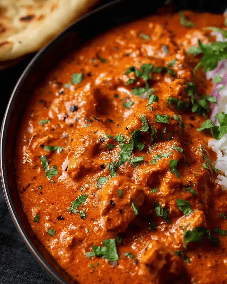 For a delicious meal, serve your Butter Chicken over fluffy basmati rice or with warm naan bread. Roasted or steamed vegetables can add a nice touch. Don't forget a side of yogurt or a fresh cucumber salad to balance out the dish's rich flavors!