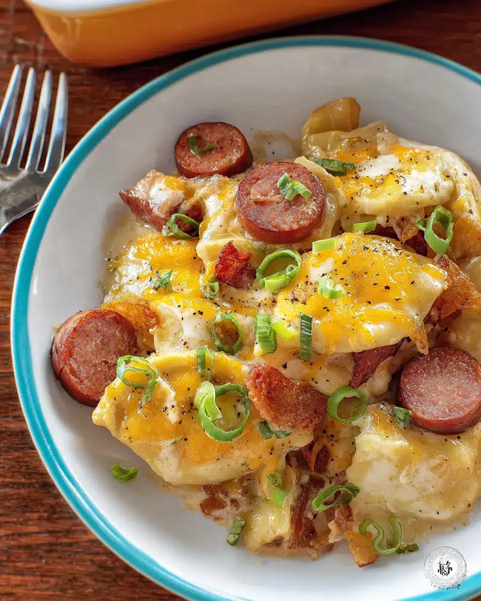 Enhance the presentation and flavor profile of your casserole with a few creative garnishing ideas! Freshly chopped parsley or dill adds a burst of color and freshness, balancing the richness of the cheese and kielbasa. A sprinkle of smoked paprika can introduce a subtle smoky flavor that pairs beautifully with the other ingredients. For an added crunch, finish with crispy jalapeño slices or toasted breadcrumbs. Each of these touches will not only make your dish look stunning but will also tantalize the taste buds!