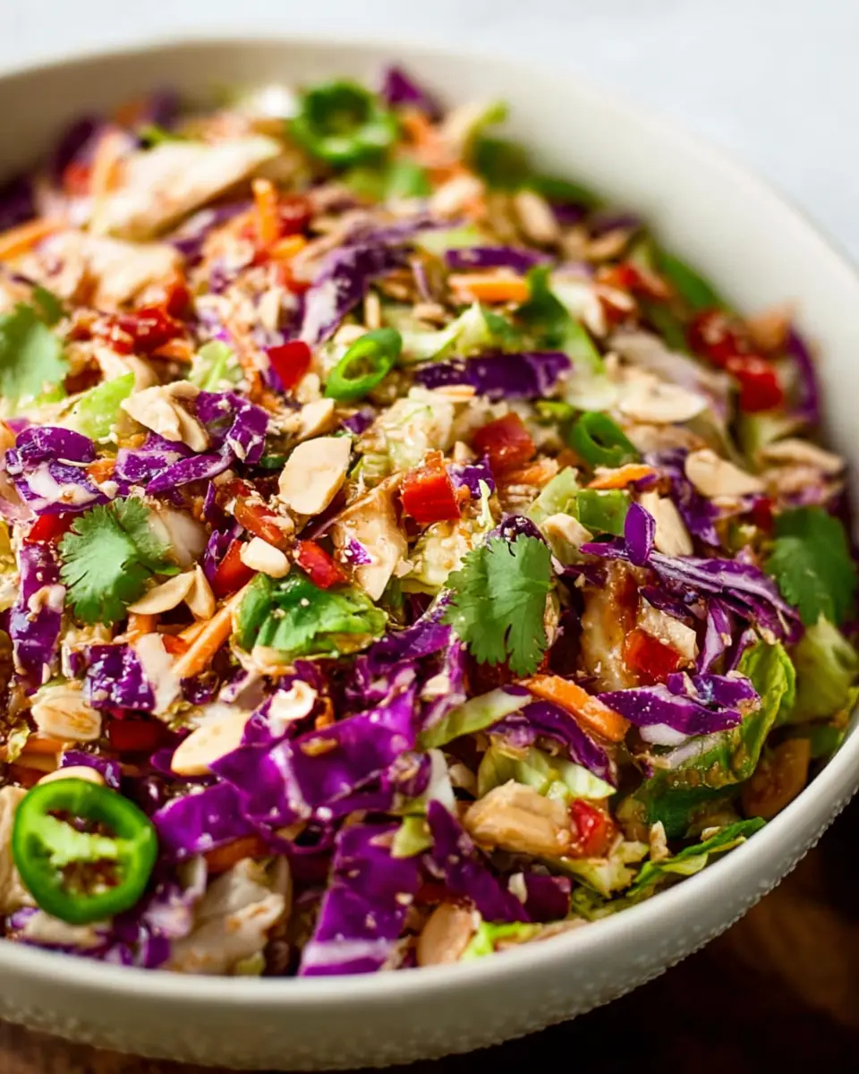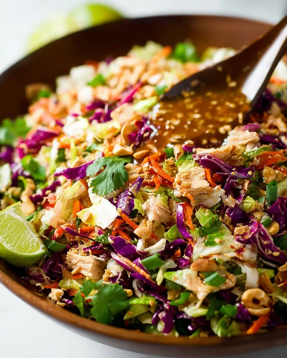 Looking to elevate your Crunchy Asian Chopped Salad into a memorable meal? Try pairing it with grilled chicken or turkey bacon for a protein boost. If you’re leaning vegetarian, consider topping it with chickpeas or marinated tofu. For sides, some crunchy rice paper rolls or a light miso soup will complement the fresh flavors wonderfully. To drink, a refreshing iced green tea or coconut water will balance the crunch perfectly!