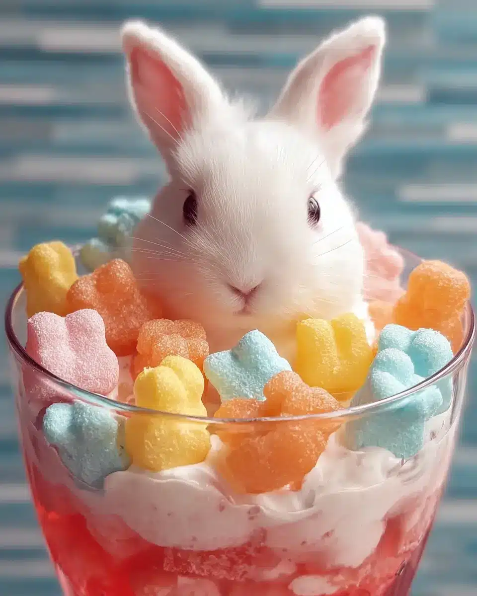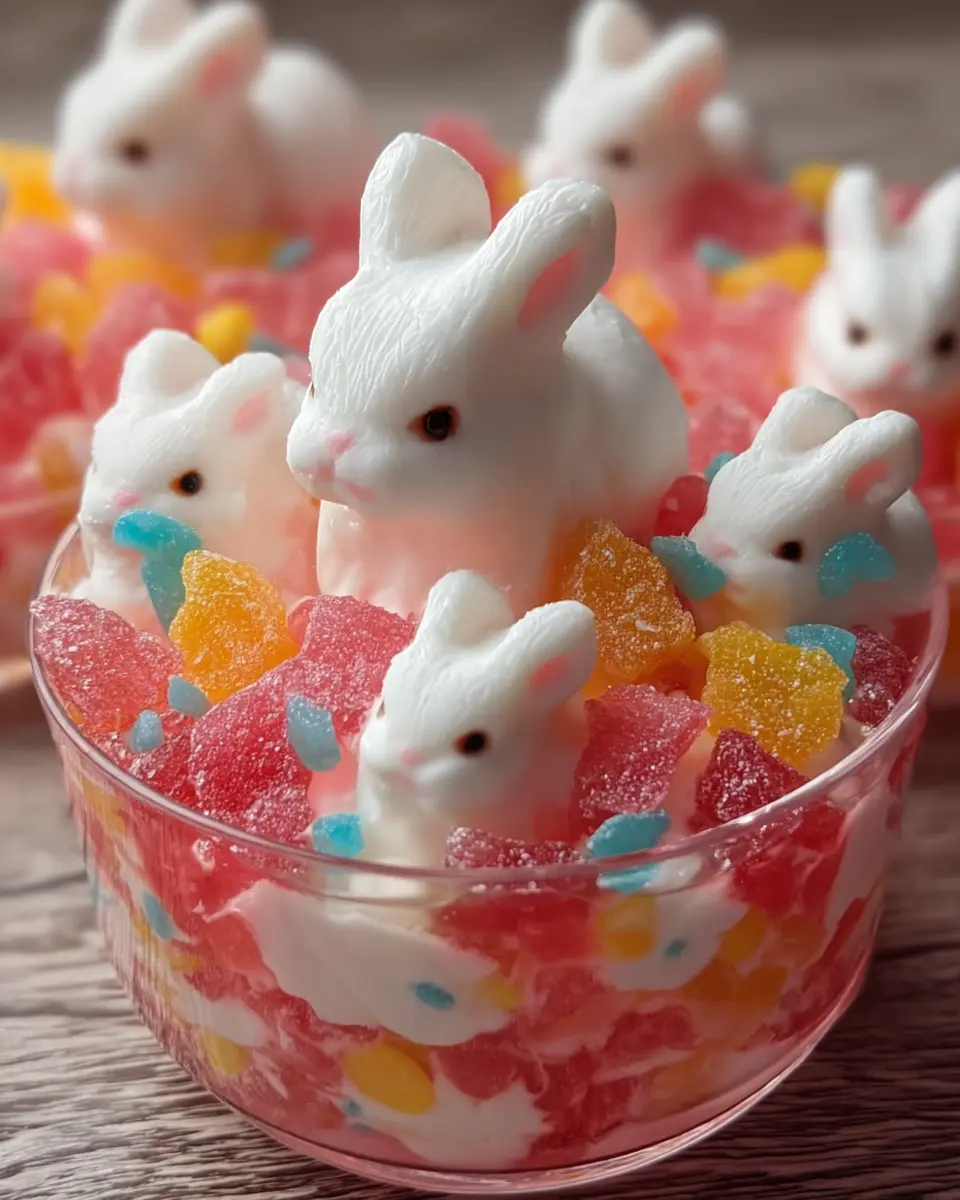 - Serve in cups and garnish with gummy bunny candies for a festive touch.