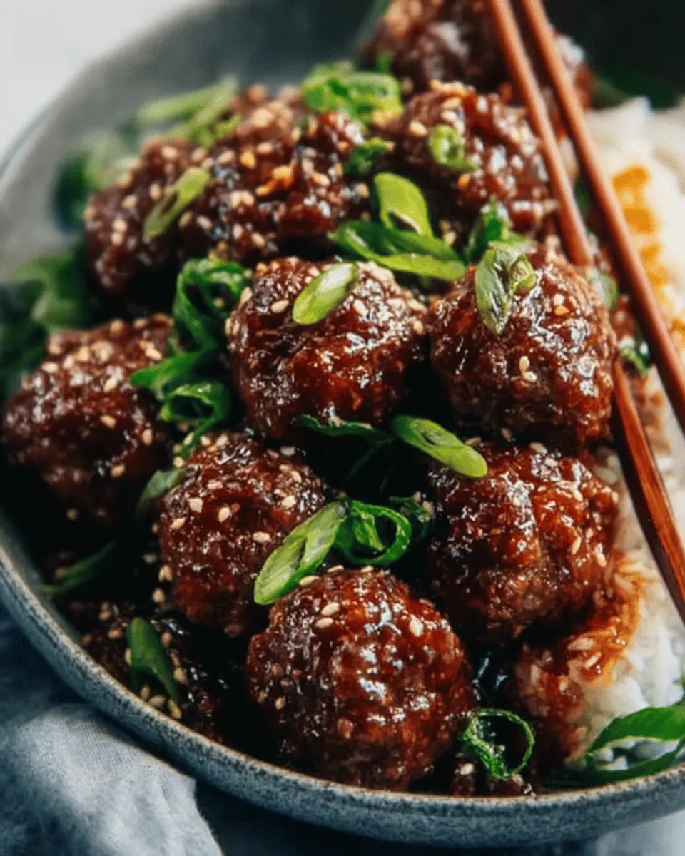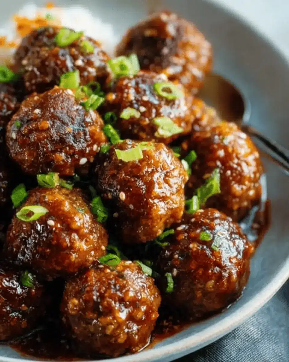 Serve your easy Mongolian meatballs hot, garnished with sliced green onions, over a bed of steamed rice. Enjoy!