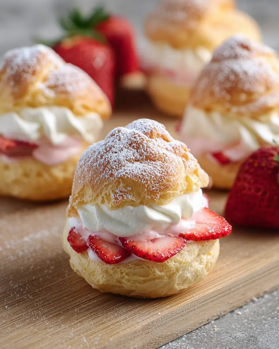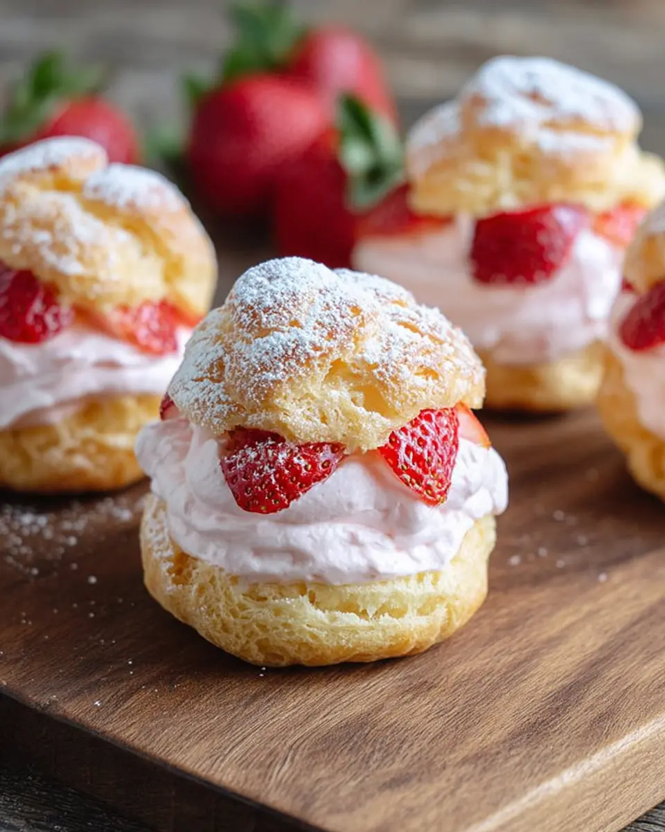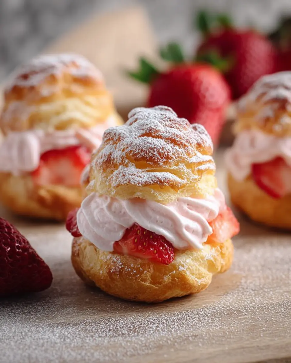 These easy strawberry cream puffs will surely impress and satisfy anyone who takes a bite. Enjoy the delightful experience of preparing—and eating—this elegant dessert!