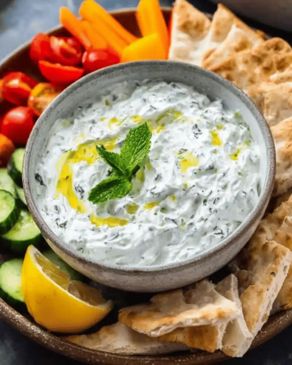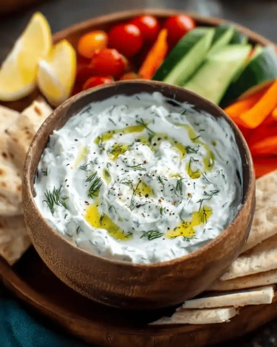 Before you serve, transfer the tzatziki sauce to a nice serving bowl and drizzle with a bit more olive oil. This not only looks inviting but adds extra richness as well. Pair your tzatziki with warm pita bread or an assortment of sliced vegetables for a delightful appetizer!