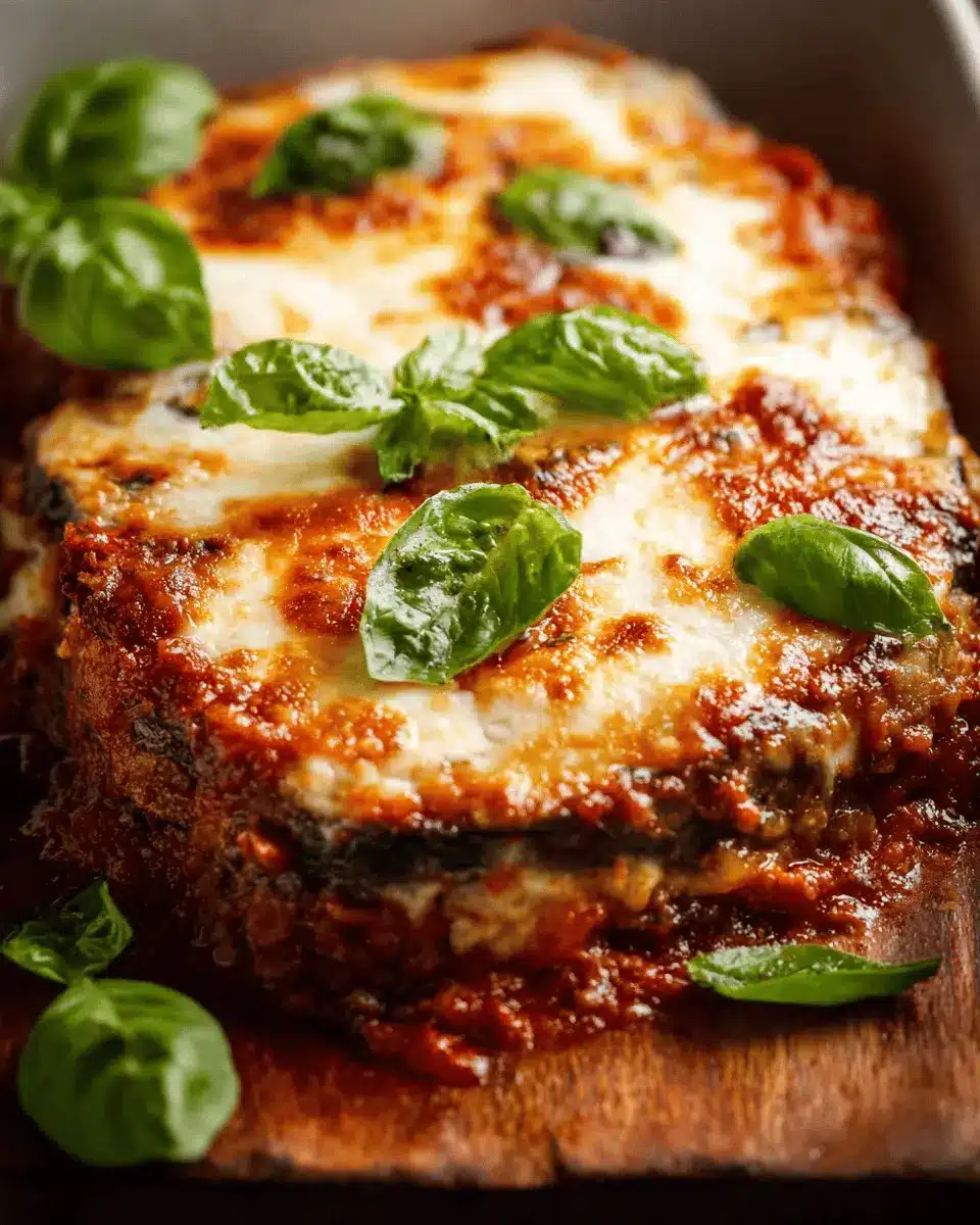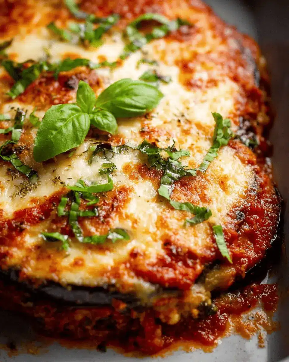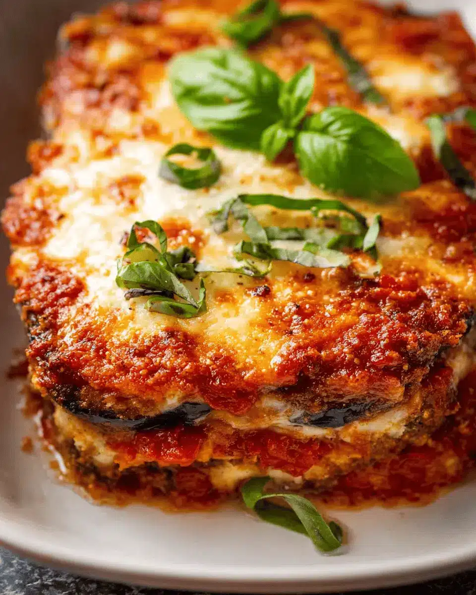 Once your eggplant parmigiana is out of the oven, resist the urge to dive right in! Let it rest for 5 to 10 minutes; this helps the layers set and makes for easier slicing. Just before serving, scatter some fresh basil leaves on top for that extra flair. By following these steps, you’ll be serving up a dish that’s not just comforting but effortlessly elegant.
