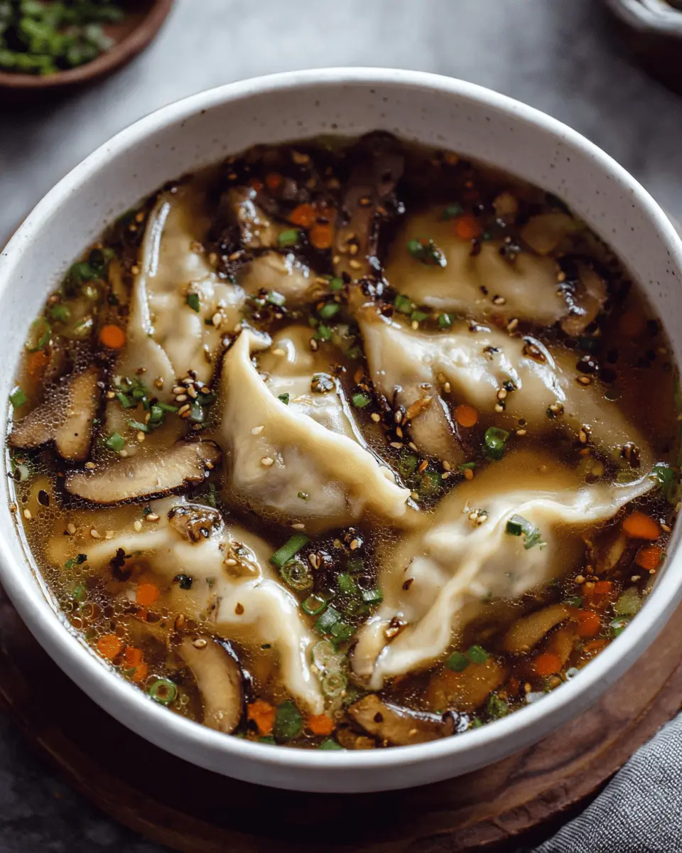 What makes this soup an instant favorite? It harnesses the convenience of frozen potstickers, allowing you to skip the time-consuming step of making them from scratch. Plus, with ingredients like shiitake mushrooms, garlic, and ginger, you’re not just filling your belly but nourishing your body too. Who says quick meals can’t be healthy and delicious?
