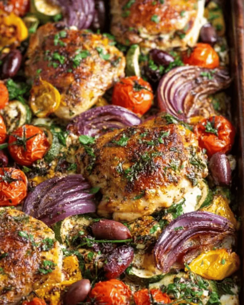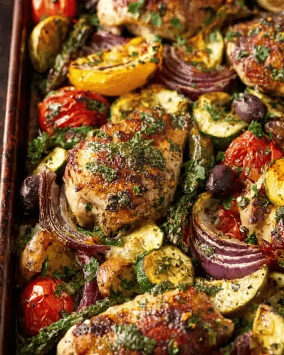 For sure! This sheet-pan meal is perfect for meal prep. Just divide the chicken and veggies into meal containers and store them in the fridge for up to four days. It’s not only convenient but also packed with flavor, helping you to enjoy a taste of the Mediterranean throughout your week!