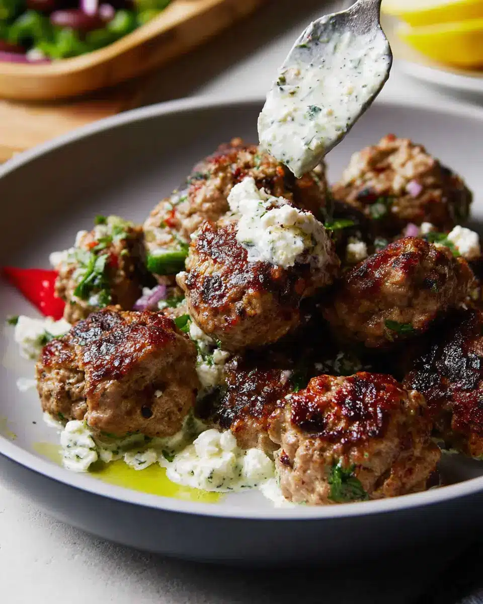 When it comes to enhancing each bite, tzatziki sauce is a must—its cool, creamy yogurt base pairs impeccably with these meatballs. A squeeze of fresh lemon juice also brightens the dish, cutting through the richness of the feta. Consider adding spicy harissa or a drizzle of balsamic glaze for an unexpected twist. These condiments not only boost flavor but also make your meal more enjoyable!