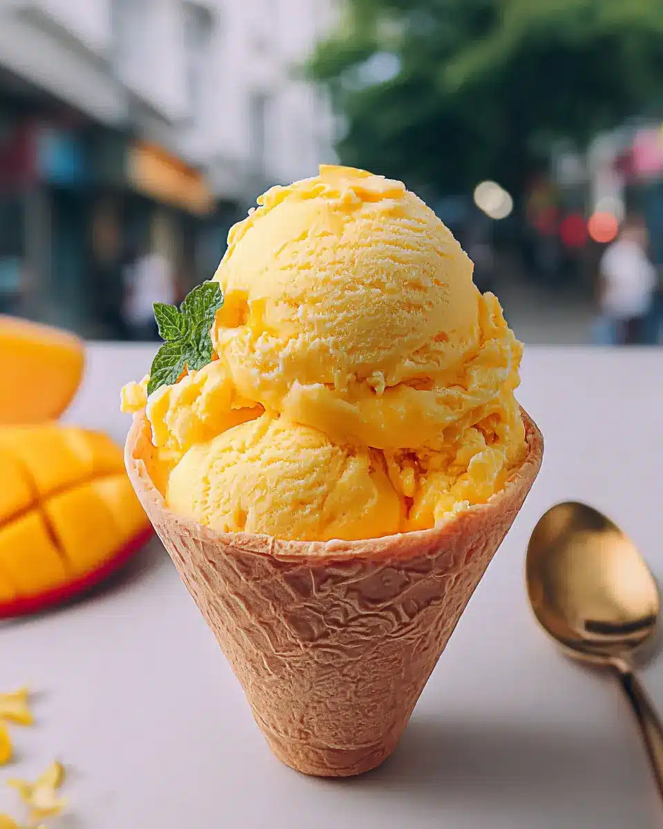 - Crunchy Textures: Try topping your mango ice cream with crushed macadamia nuts or granola for a delightful crunch.