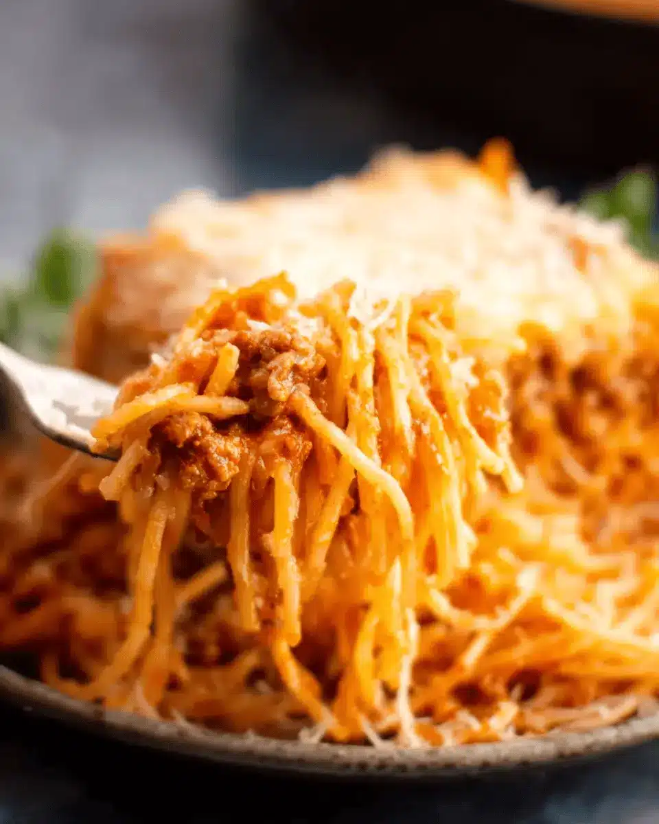 Making Million Dollar Spaghetti healthier is easy! Consider using whole grain spaghetti for added fiber and nutrients. You can also swap the cream cheese for Greek yogurt, or use low-fat cheeses. Adding in some veggies like spinach, bell peppers, or zucchini can increase the nutritional value without sacrificing taste.