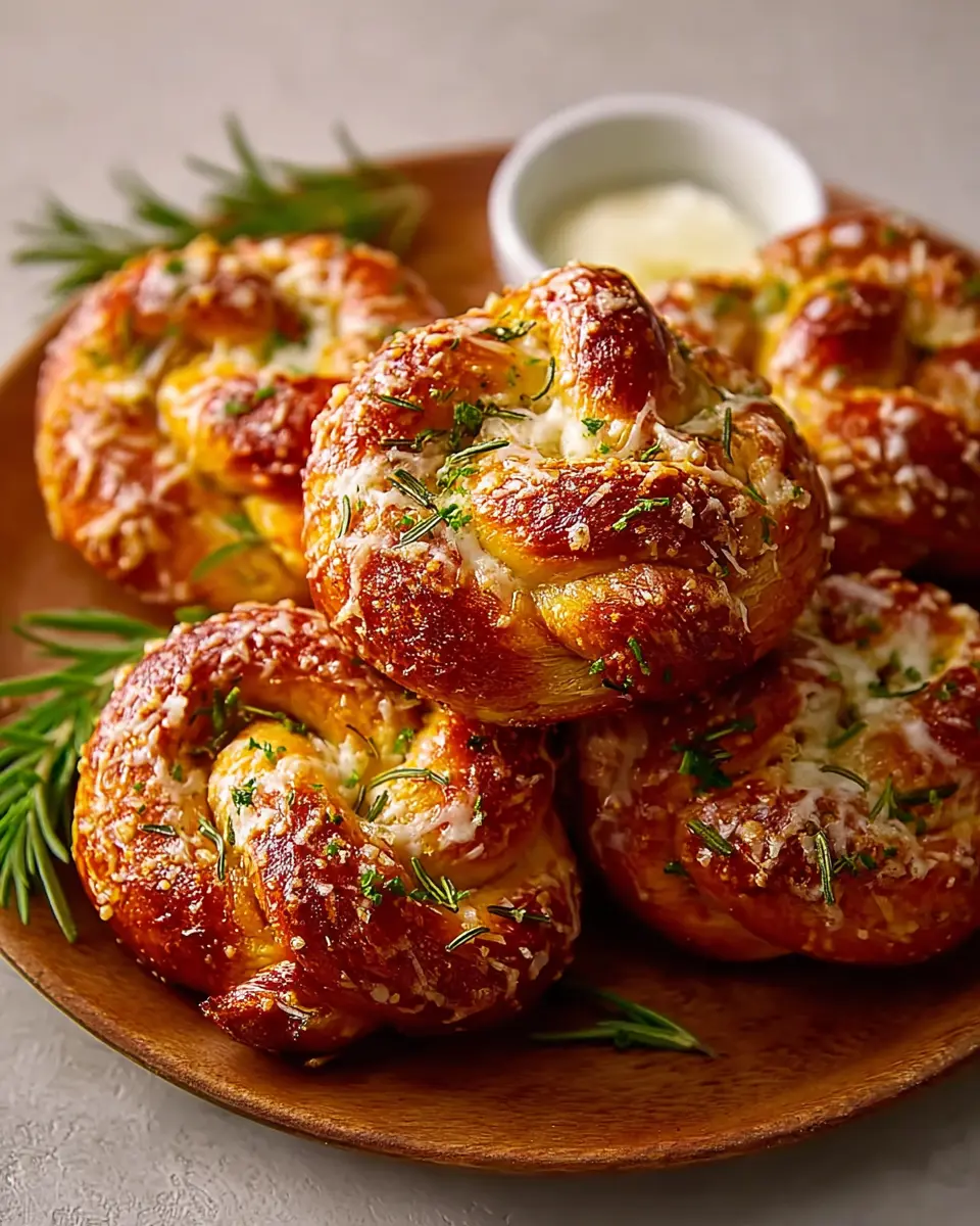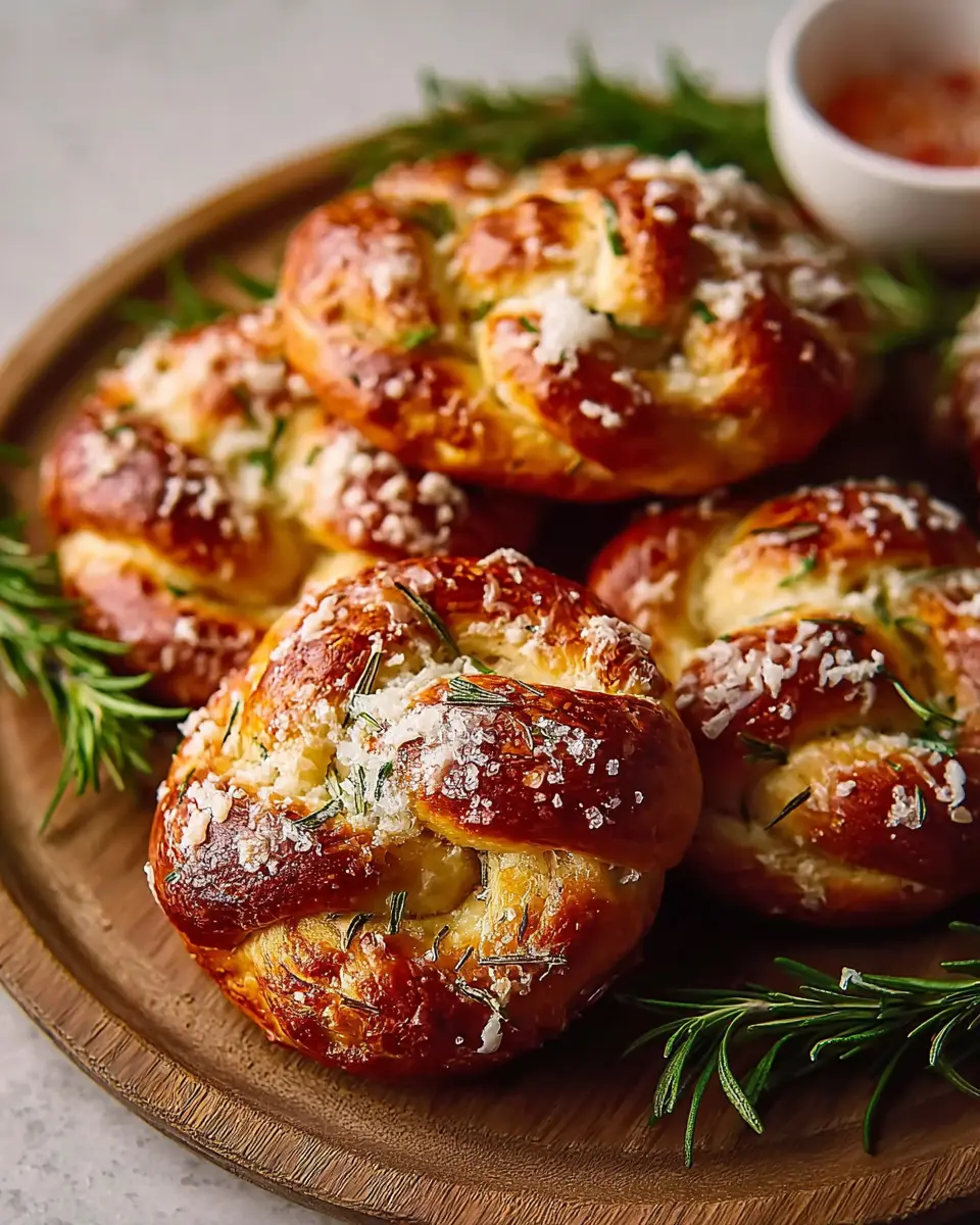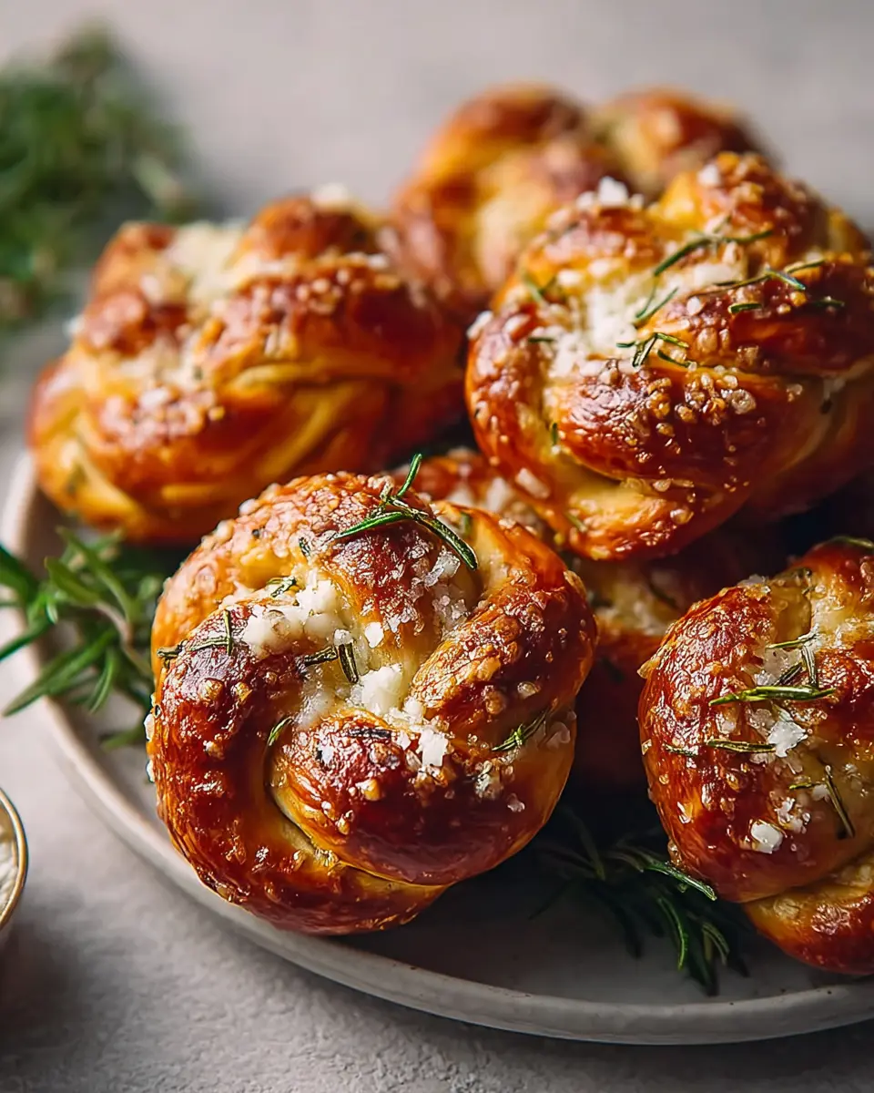 Mozzarella Stuffed Rosemary Parmesan Soft Pretzels Recipe