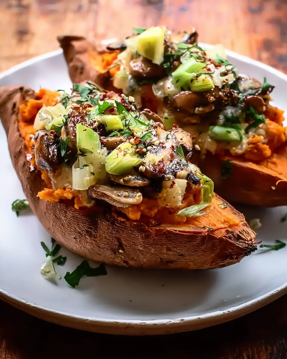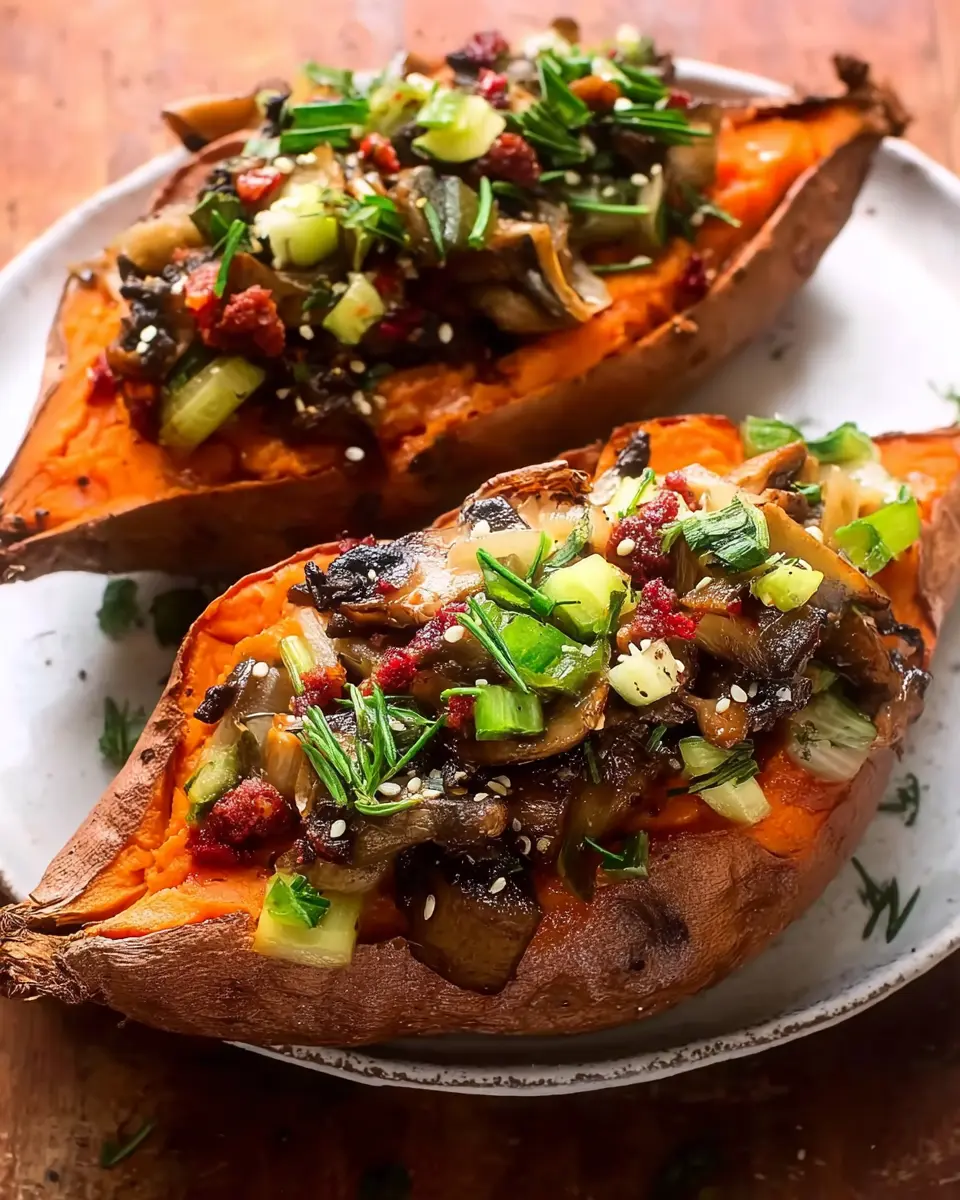 Mushroom Stuffed Sweet Potatoes