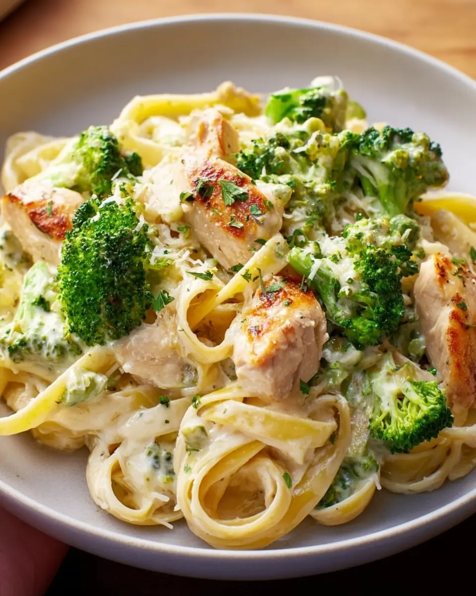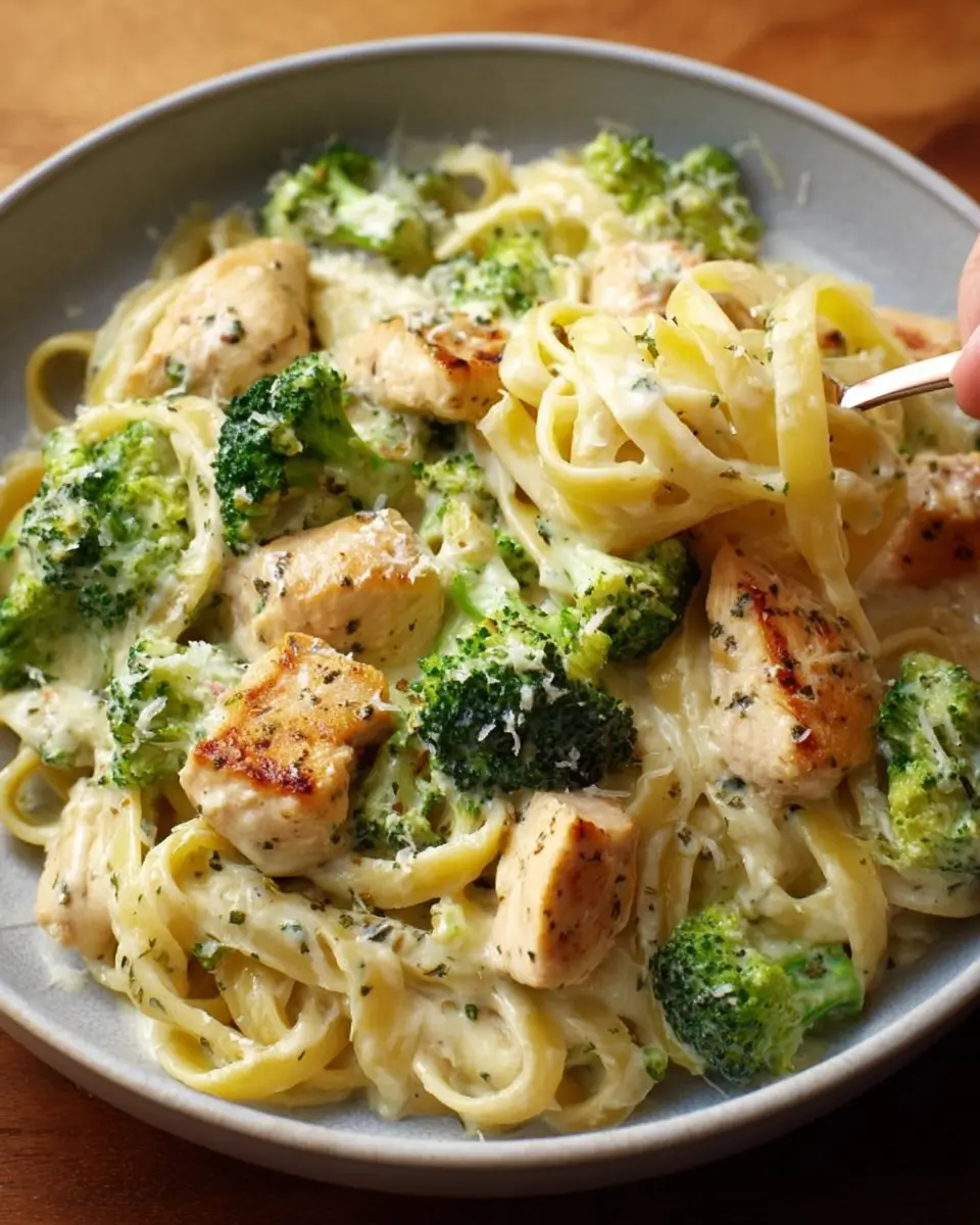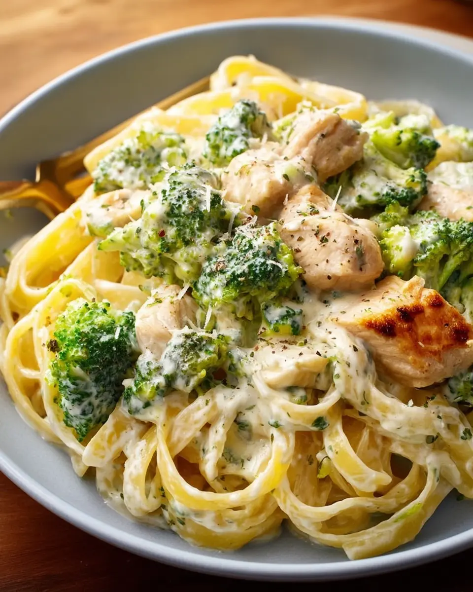 - Spoon the creamy ranch chicken broccoli fettuccine into bowls and enjoy immediately.