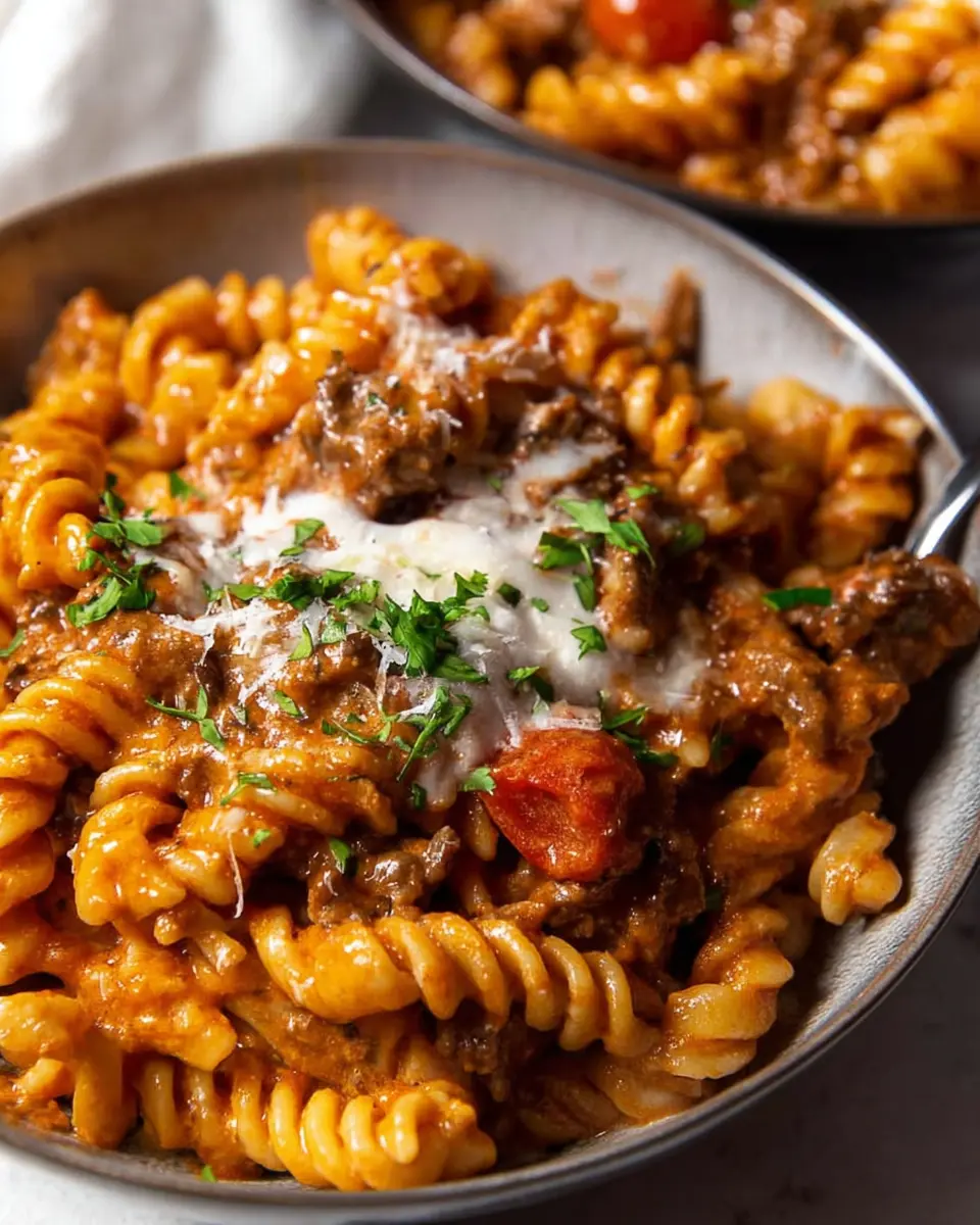 Finally, remove the pot from heat and stir in the thickened cream. Allow it to simmer for an additional 1-2 minutes. The sauce will be saucy, perfect for coating the pasta just right. Serve your one pot creamy tomato beef pasta in bowls topped with finely grated Parmesan and a sprinkle of fresh parsley if you like. This dish is not just a meal; it's the ultimate comfort food experience.