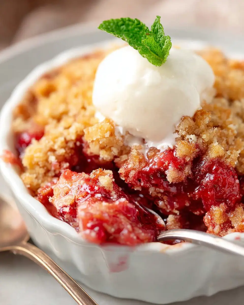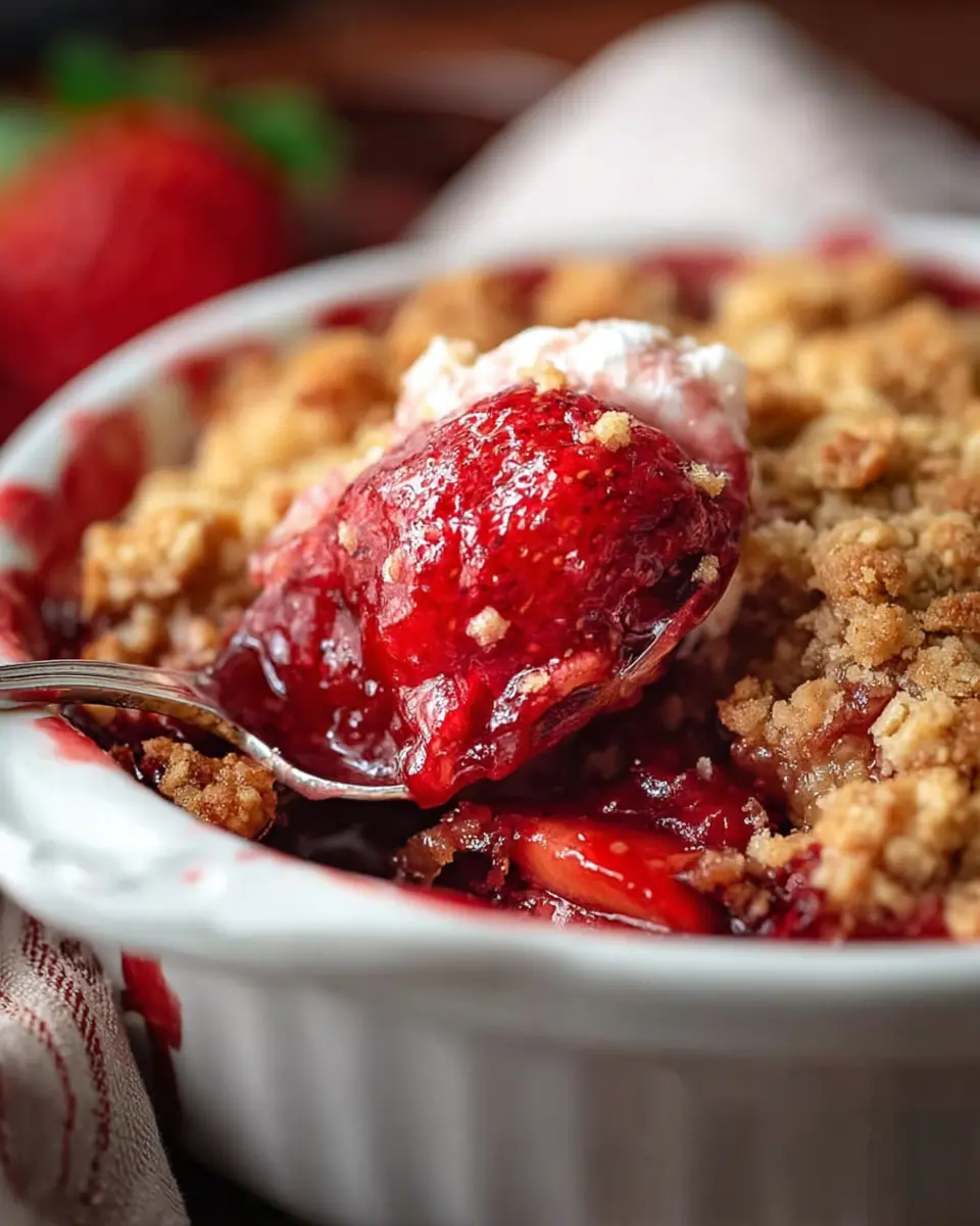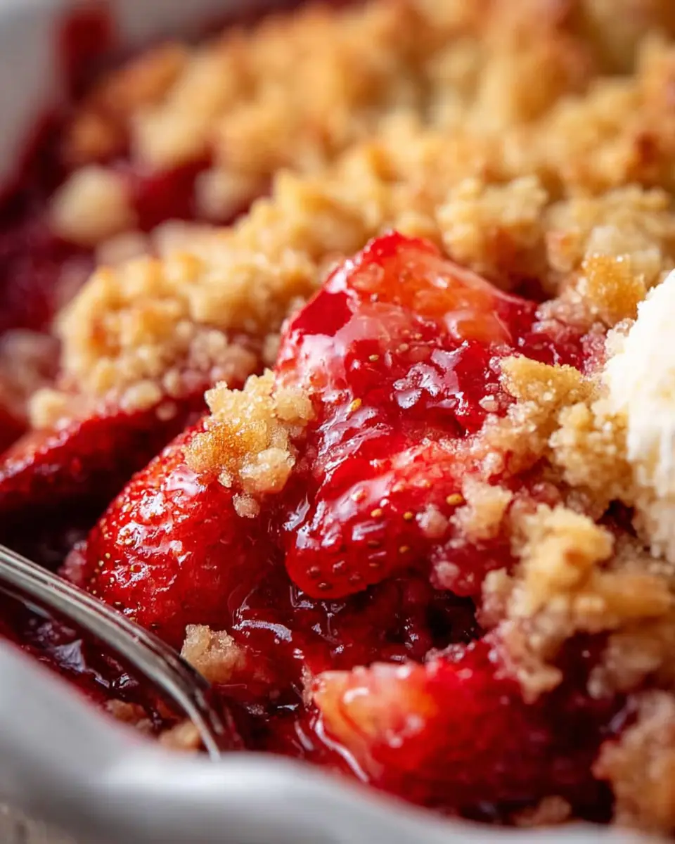 Serve it Warm: Enjoy the crumble fresh out of the oven. Pairing it with a scoop of creamy vanilla ice cream adds just the right amount of chill to the warm, juicy strawberries.