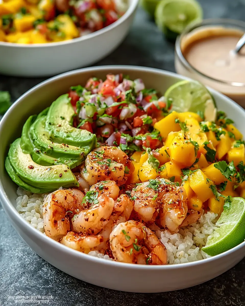 Shrimp Avocado Bowls with Mango Salsa & Lime Chili Sauce Recipe
