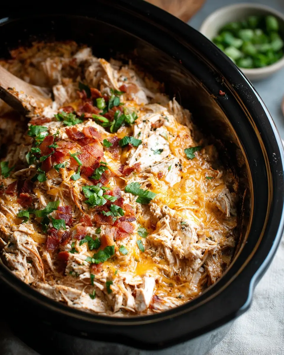 In just 50 words, Slow Cooker Crack Chicken brings comfort food to a new level. Perfect for busy weeknights or gatherings, it combines tender chicken, turkey bacon, and creamy cheese in one delicious dish. Serve it over rice or in a sandwich for a satisfying meal that everyone will love.