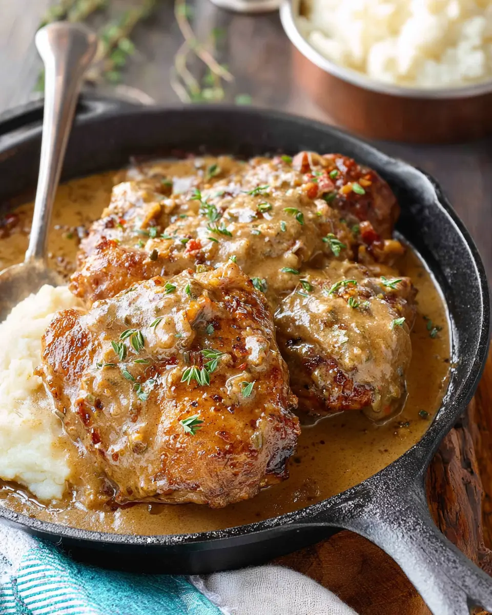 To create a truly rich and velvety gravy for your Southern smothered chicken, be sure to take your time when adding the seasoned flour. Cook the flour in the pan drippings until golden, as this enhances depth of flavor and removes the raw taste. Gradually whisk in low-sodium chicken stock, stirring constantly; this helps prevent lumps and ensures a smooth texture. Don't forget to taste your gravy and adjust the seasoning before adding back the chicken.