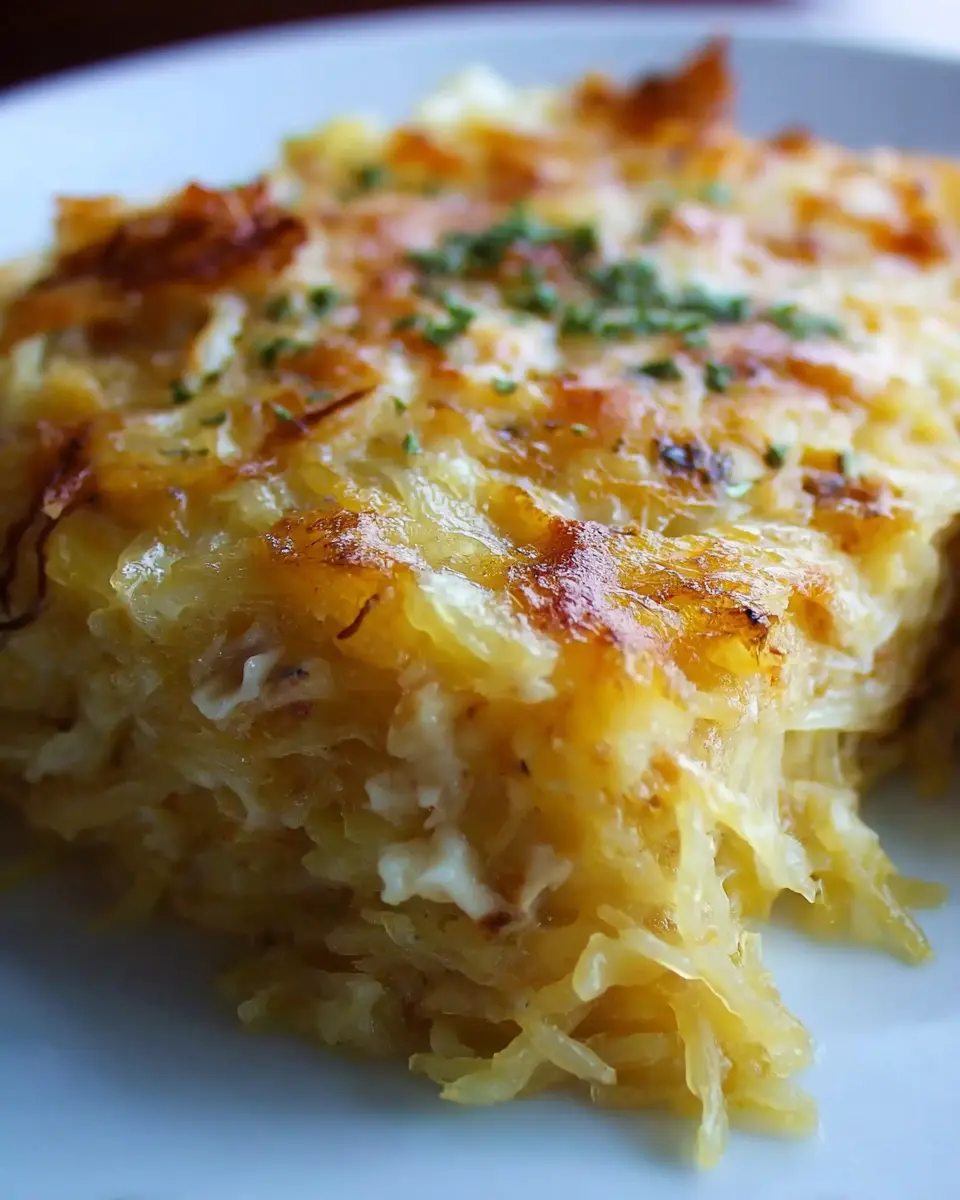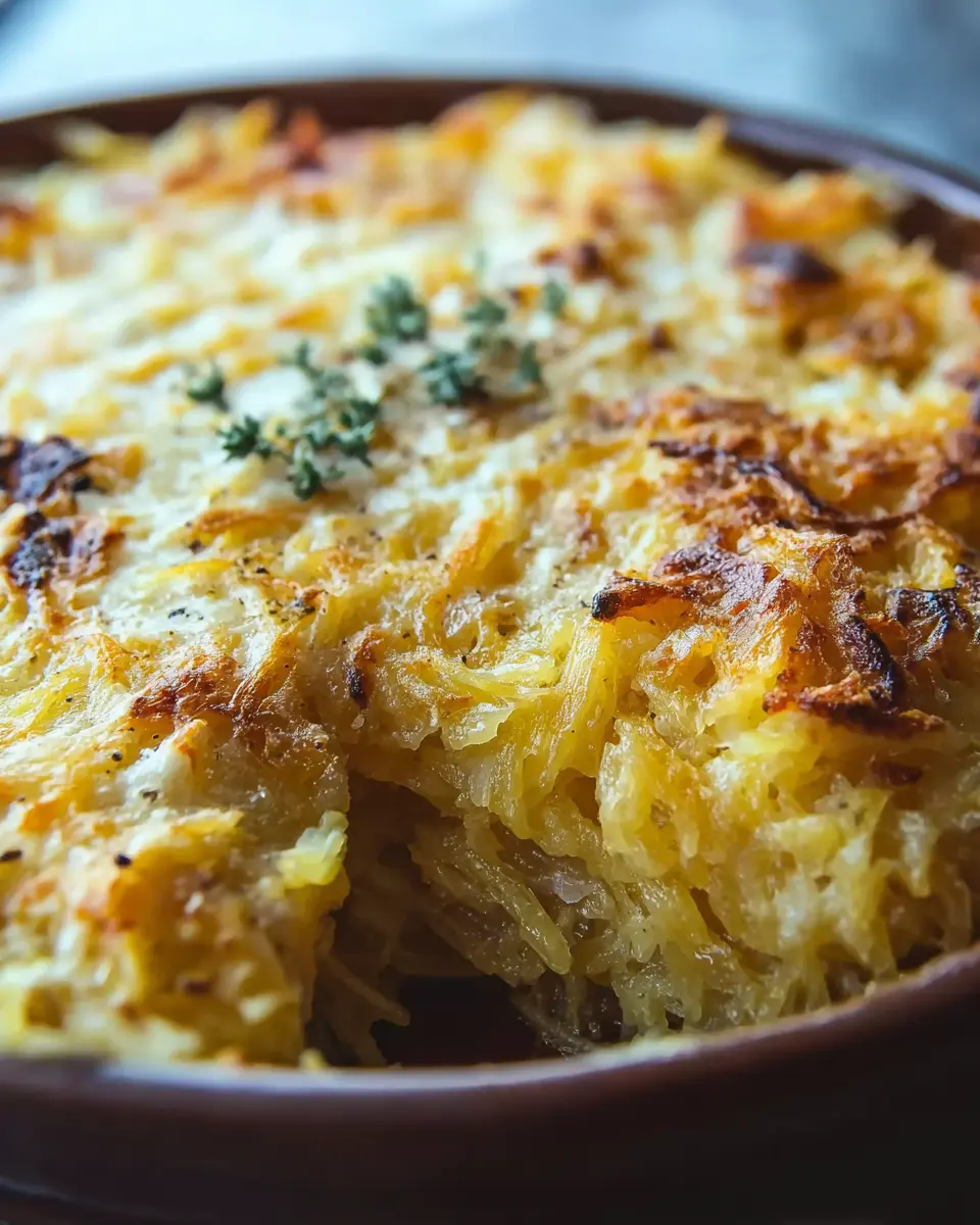 When serving spaghetti squash au gratin, presentation is key. Use a baking dish that highlights the dish's golden-brown top, and consider garnishing with fresh herbs like parsley or chives for a pop of color. Scoop out individual portions for a more elegant feel, or serve it directly from the dish for a cozy, family-style meal. For a complete experience, accompany it with a refreshing beverage like herbal iced tea or sparkling water, ensuring all those flavors shine through beautifully!