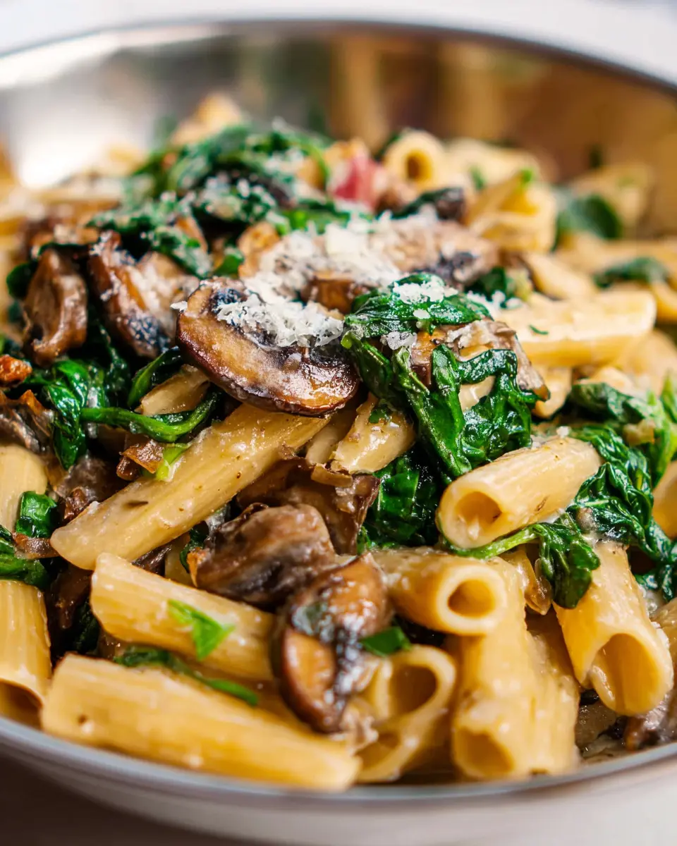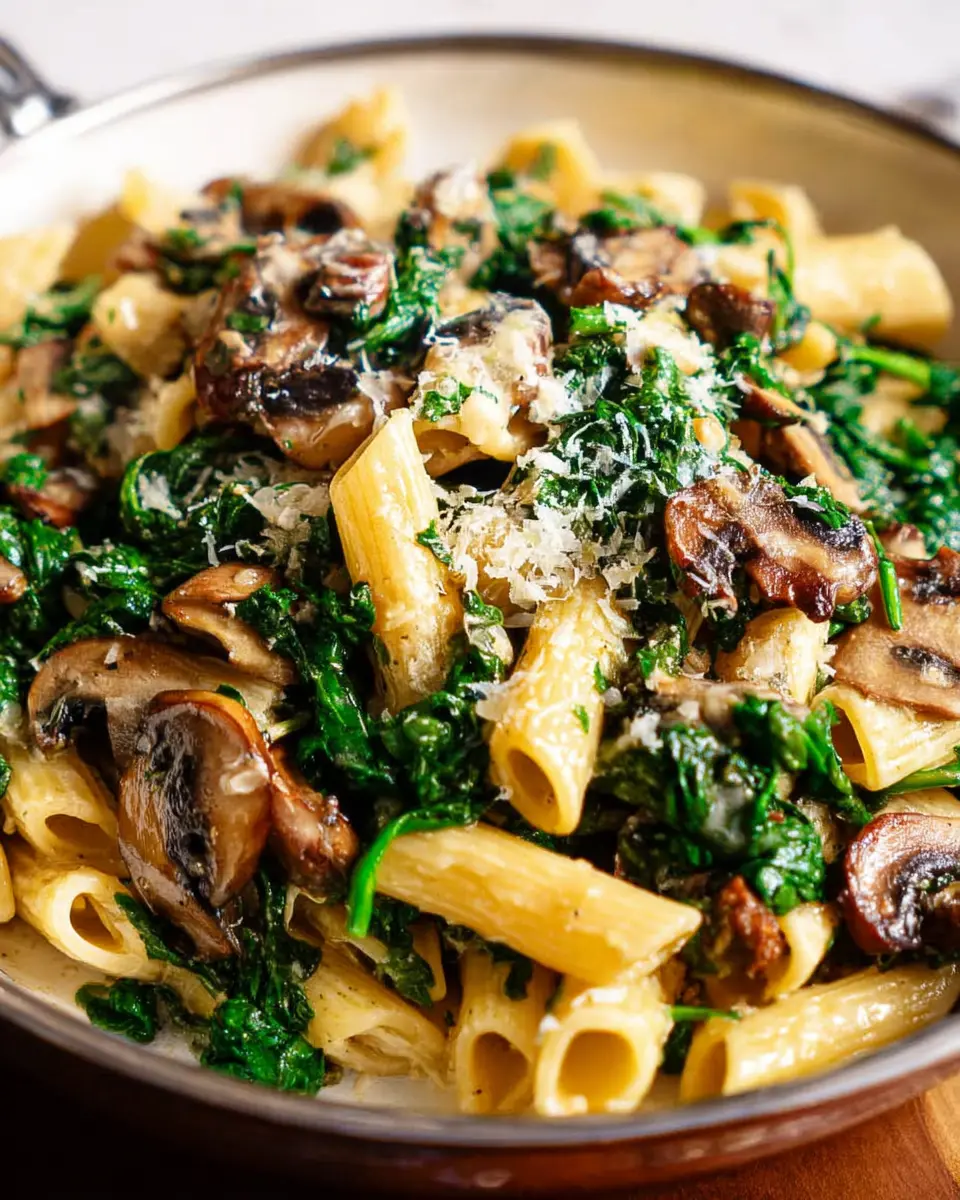 Definitely! For a gluten-free option, simply swap out regular pasta for your favorite gluten-free variety, such as brown rice or quinoa pasta. To make it vegan, use a plant-based cream alternative and omit the Parmesan cheese—or substitute it with nutritional yeast for that cheesy flavor. Your spinach mushroom pasta will still be delicious and satisfying!