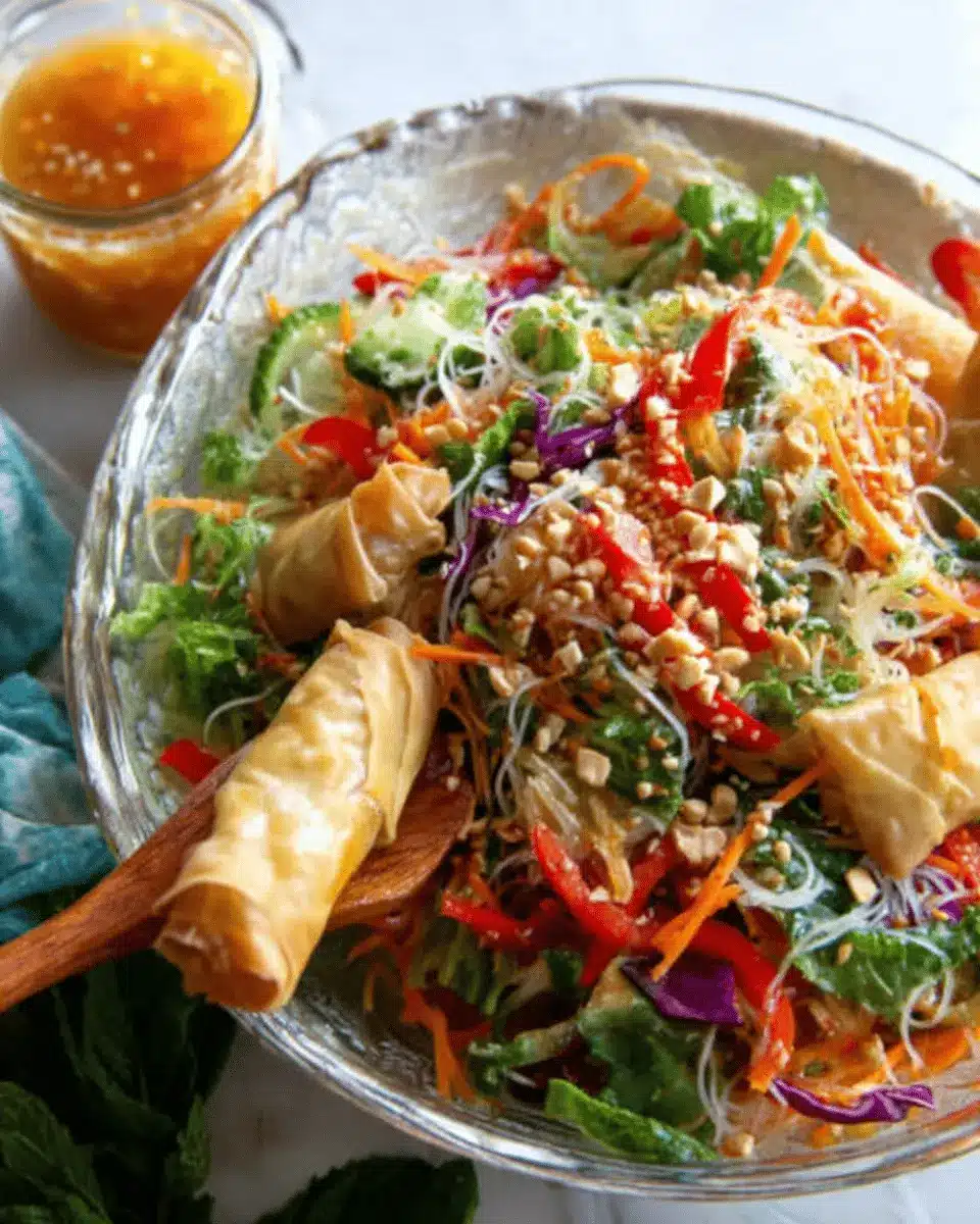And there you have it! A beautiful spring roll salad that’s just waiting to be enjoyed. Serve immediately for the best taste, and get ready to impress your friends or brighten your own day!