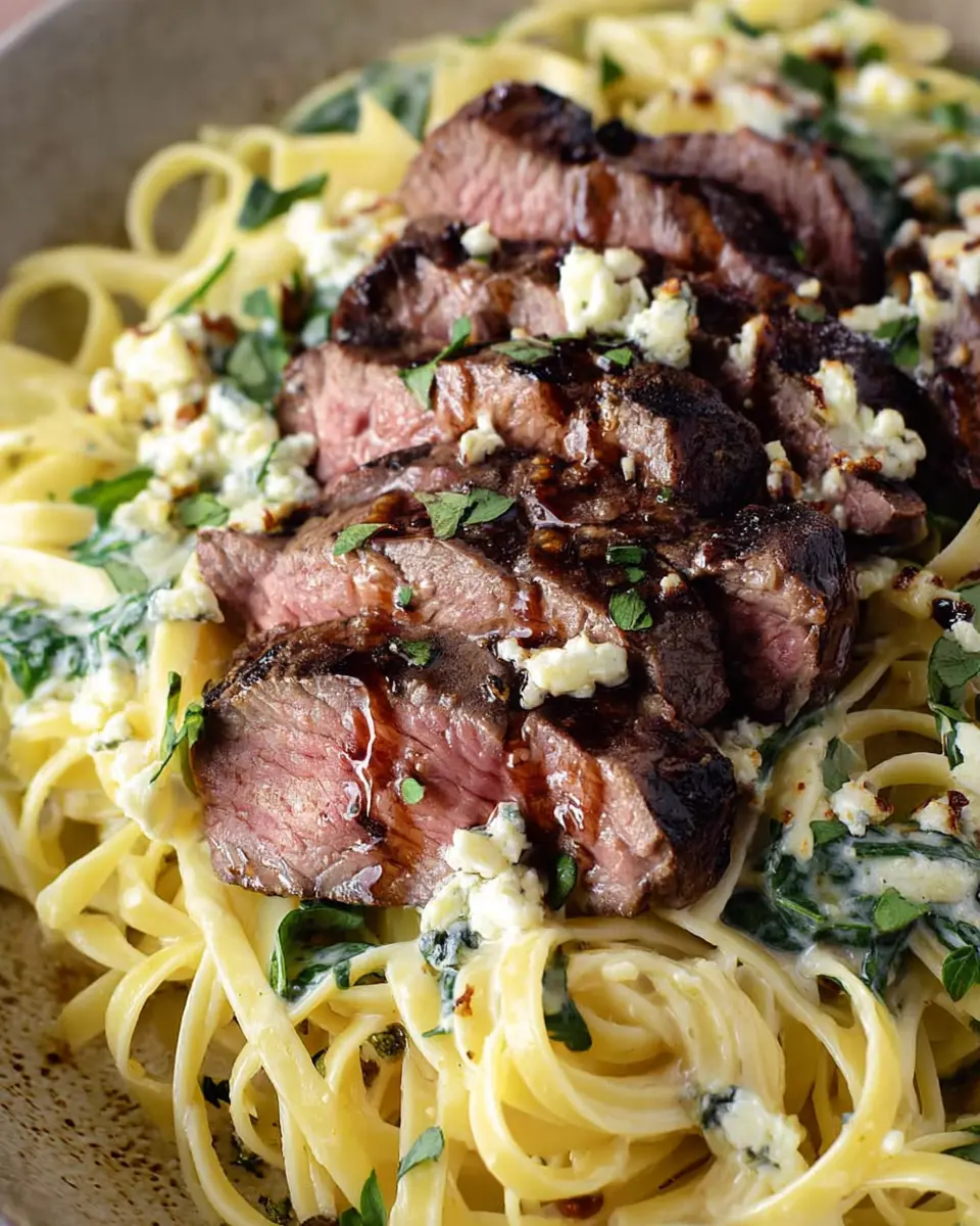 Indulging in Steak Gorgonzola Alfredo is like experiencing a slice of Italy right at your dinner table. The combination of tender steak, creamy gorgonzola, and fresh spinach creates a mouthwatering dish that’s perfect for any occasion. Give this recipe a try, and delight your taste buds today!