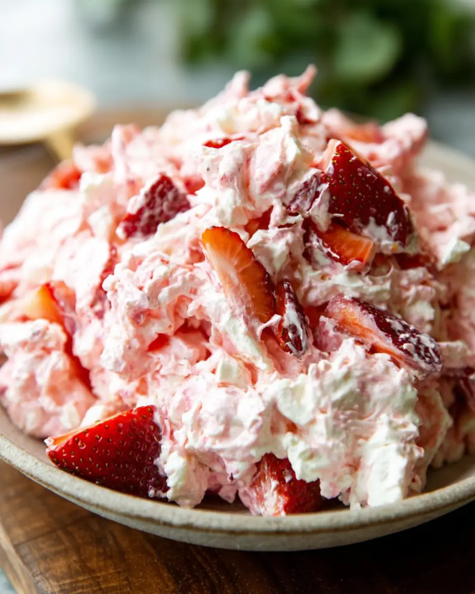 In summary, the strawberry fluff salad is a delightful addition to any gathering. It's not only easy to prepare, but the combination of fresh strawberries and pineapple makes it irresistibly refreshing. Perfect for potlucks or simply as a sweet treat, this dish will surely impress your friends and family!