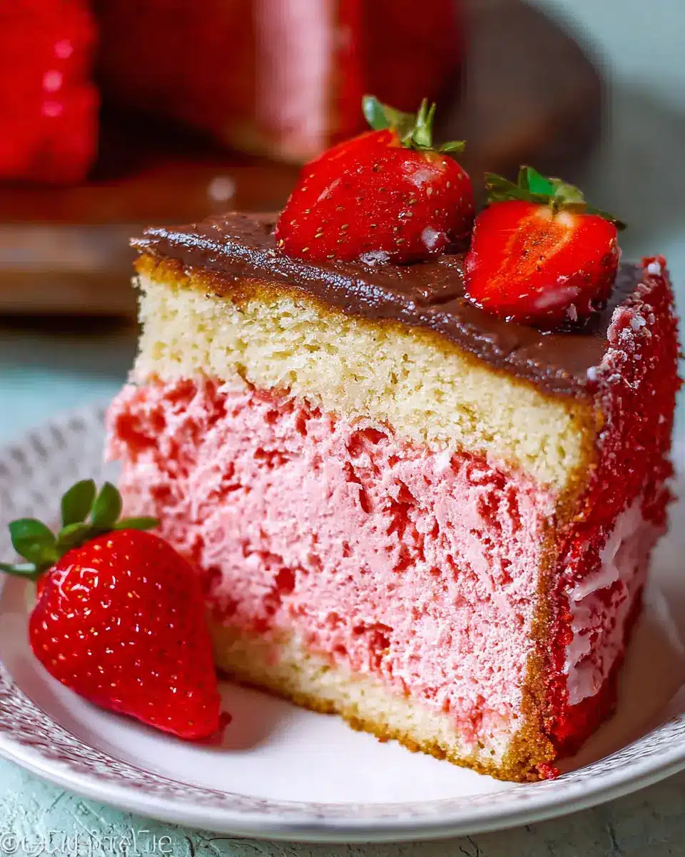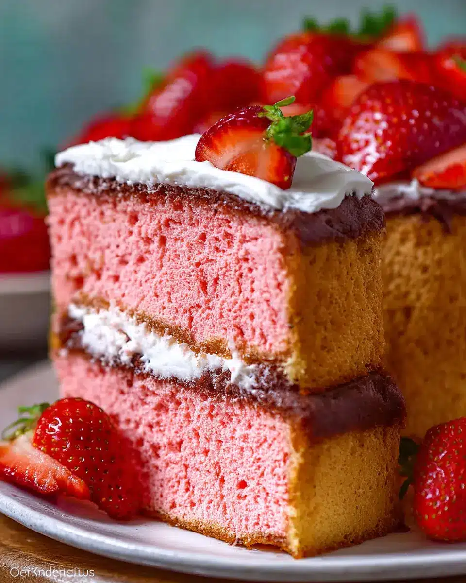 - Layered Delight: Slice the cake horizontally to create layers. Spread whipped cream and fresh strawberries between these layers for a stunning look.