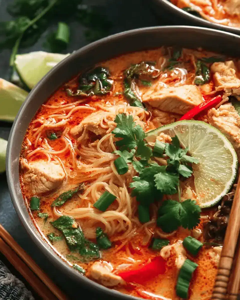 If you're craving a rich, flavorful dish that warms you from the inside out, look no further than Thai Red Curry Noodle Soup. This delightful blend of tender chicken, vibrant vegetables, and creamy coconut milk brings the essence of Thailand right to your kitchen. It’s not just a meal; it’s an experience that transports you to local street markets filled with the aroma of spices and fresh herbs.