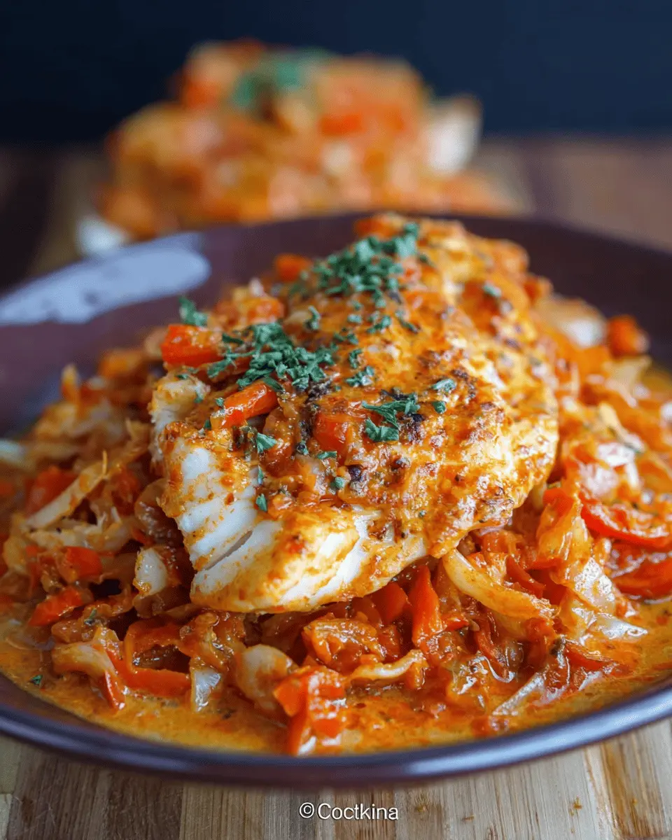 Tilapia in roasted pepper sauce pairs beautifully with a range of sides. Consider serving it over a fluffy bed of rice or quinoa. A side of sautéed green beans or a fresh arugula salad will add some nice color and crunch. For a cozy vibe, consider garlic bread to soak up that delicious sauce!