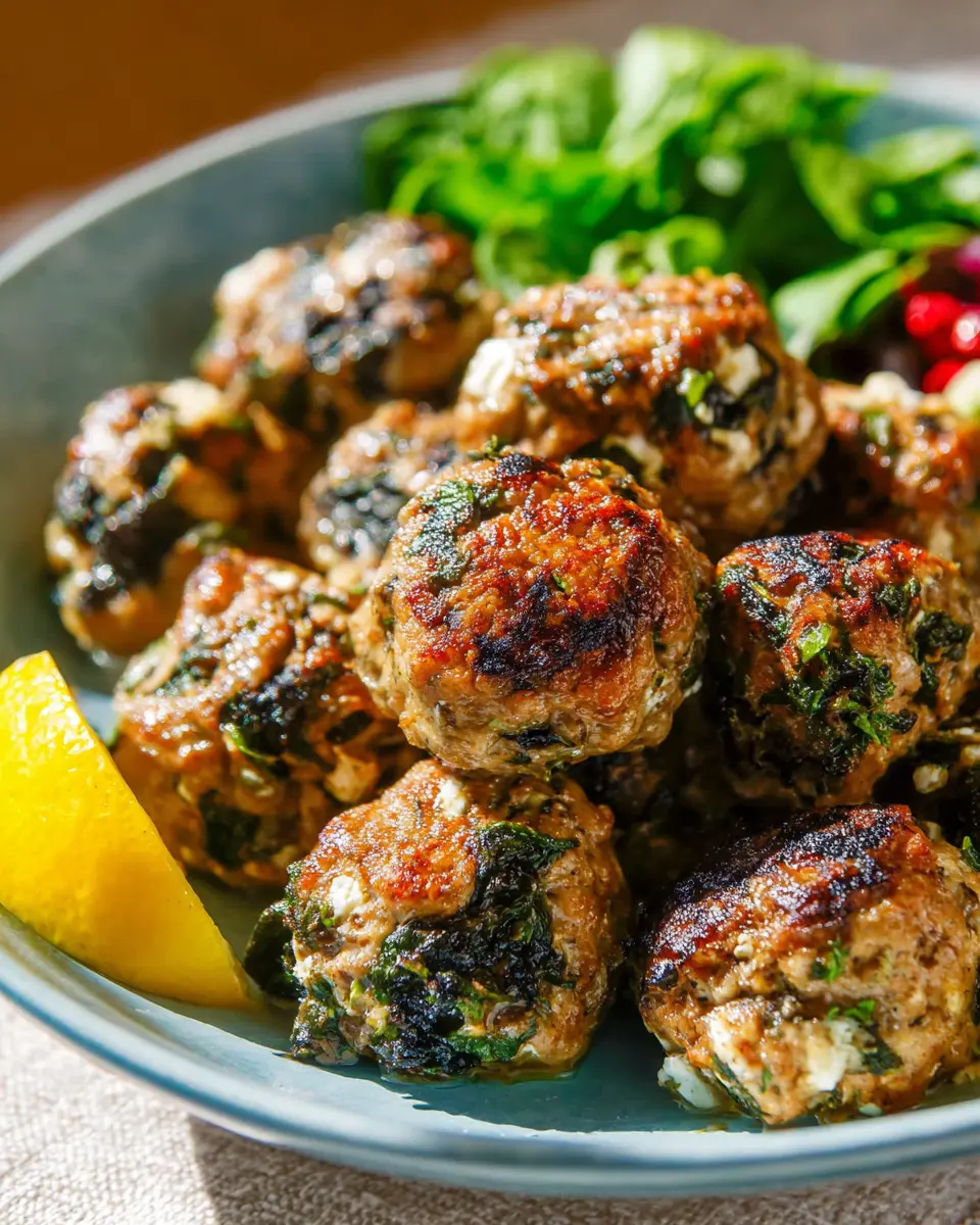 Turkey Meatballs with Spinach, Feta, and Mint