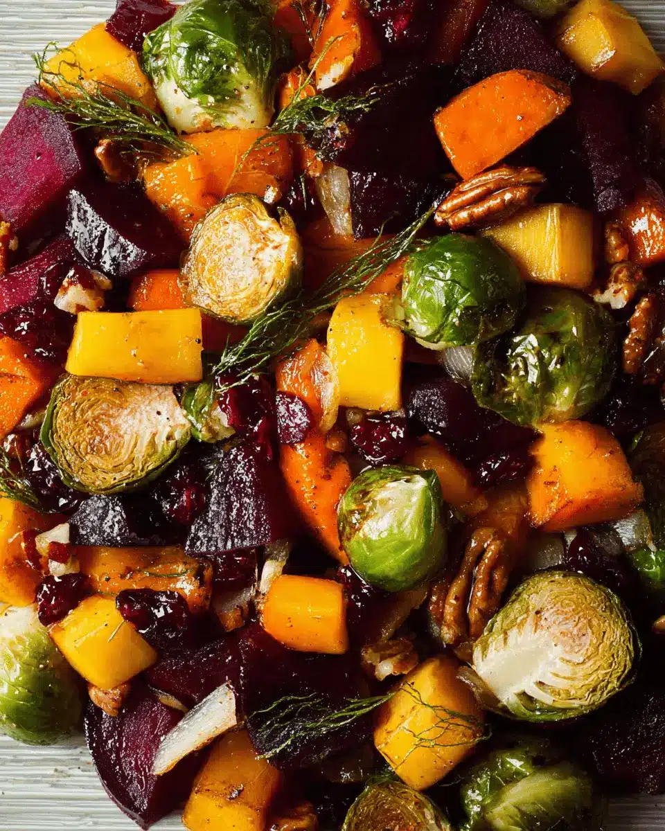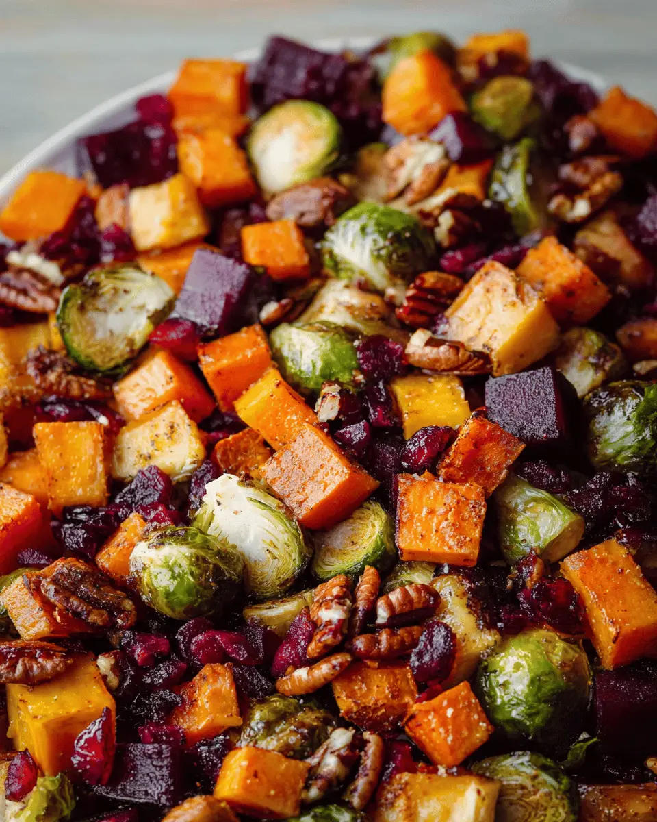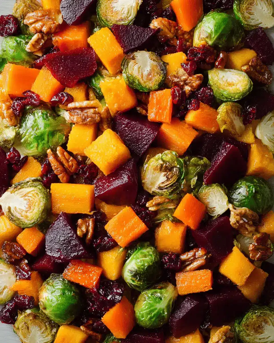 Winter Vegetable Salad with Butternut Squash, Brussels Sprouts, and Beets